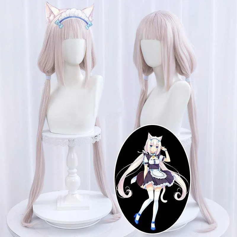 Парик ванильный NEKOPARA для косплея, розовый, 100 см, термостойкие синтетические волосы, ванильный парик с шапочкой