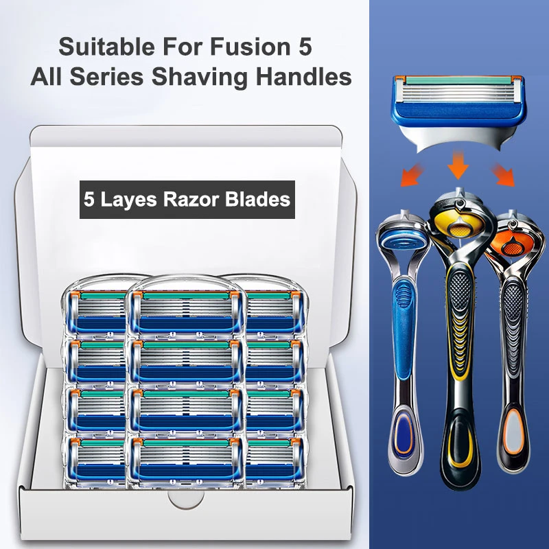 Для мужчин, бритвенные лезвия подходит Gillette Fusion5 Proglide бритвы 5 Слои Нержавеющаясталь ручной Безопасность Сменные бритвенные лезвия головки