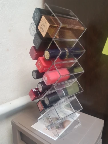 Dostawa w terminie . Produkt zgodny z opisem. Super porządkuje w szafce szminki. Jestem zadowolona z zakupu.