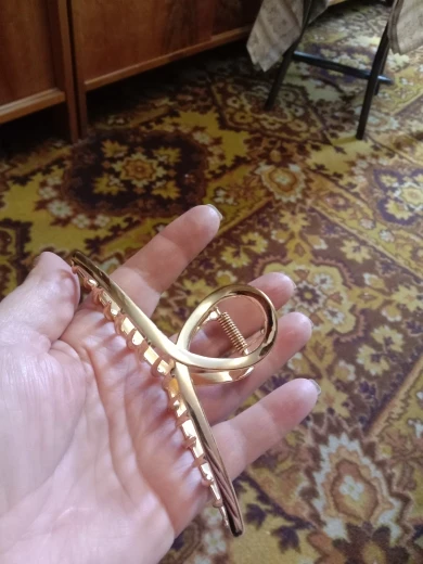 Очень, очень, очень быстрая доставка. Зажим плотно удерживает волосы, он выглядит элегантно и изготовлен из металла. Отличный продукт. Рекомендовано.