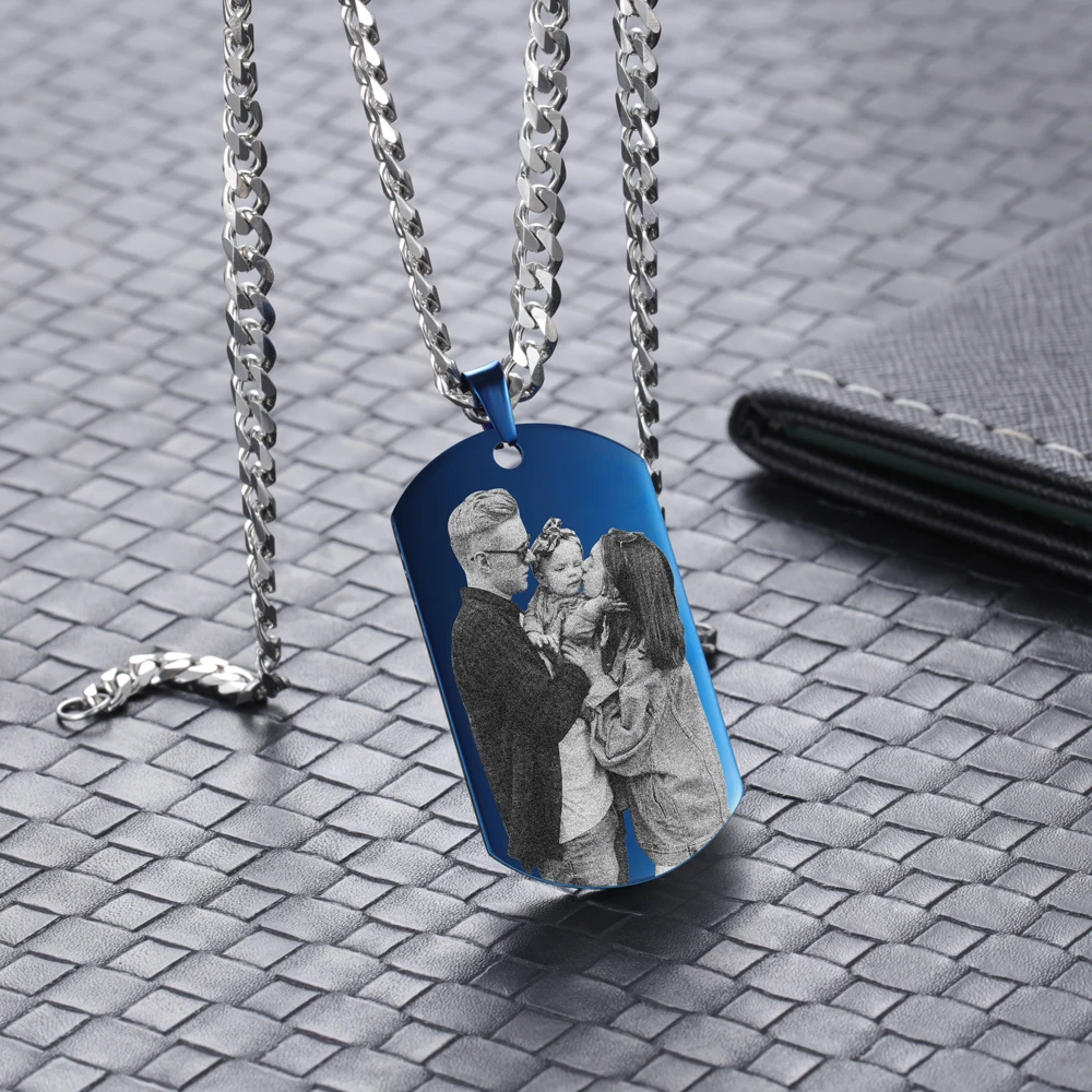 Индивидуальные фото ожерелья для мужчин черный синий цвет нержавеющая сталь гравировка календарь ожерелье персонализированные подарки для бойфренда