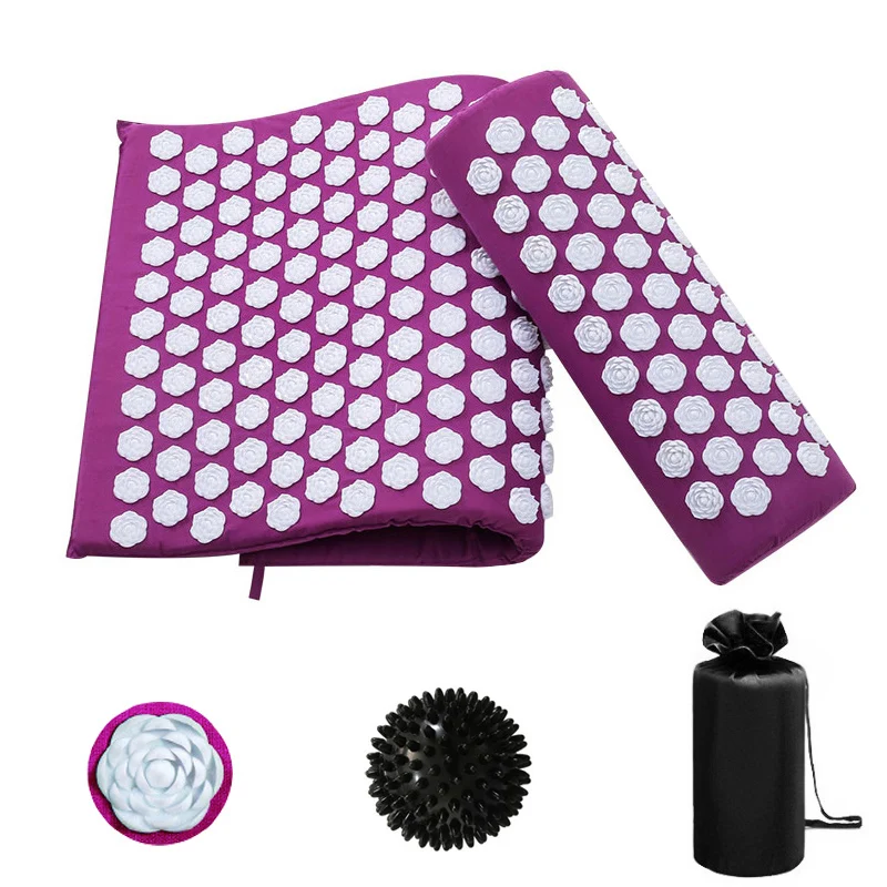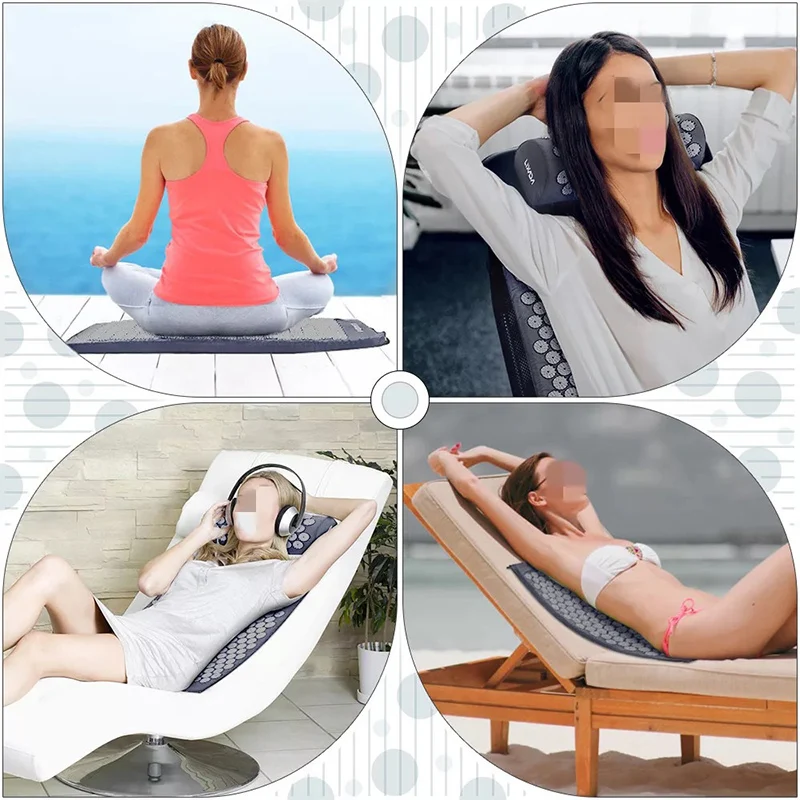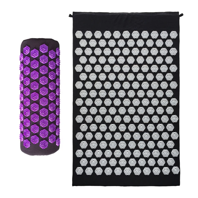 Массажный коврик для йоги с шипами лотоса, коврик для акупрессуры, массажер для расслабления мышц, акупунктурный Коврик для йоги, подушка + подушка