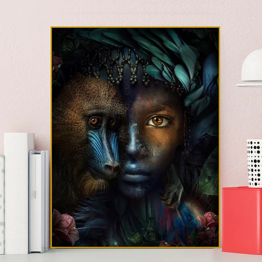Картина на холсте черная Золотая женщина, постеры и принты в африка...