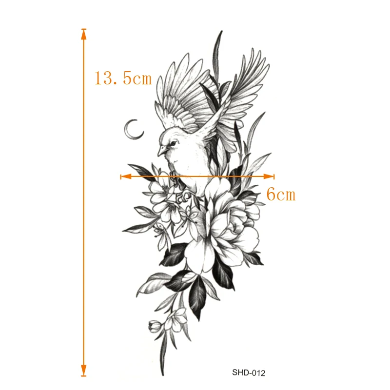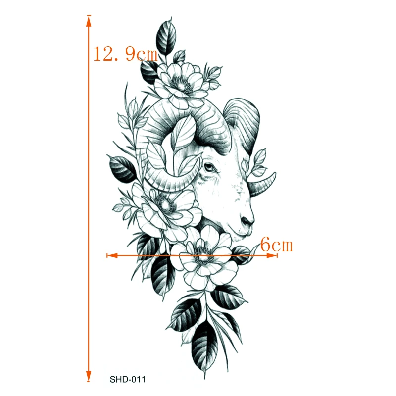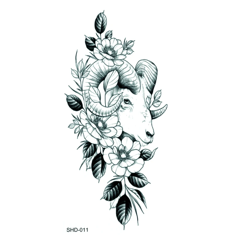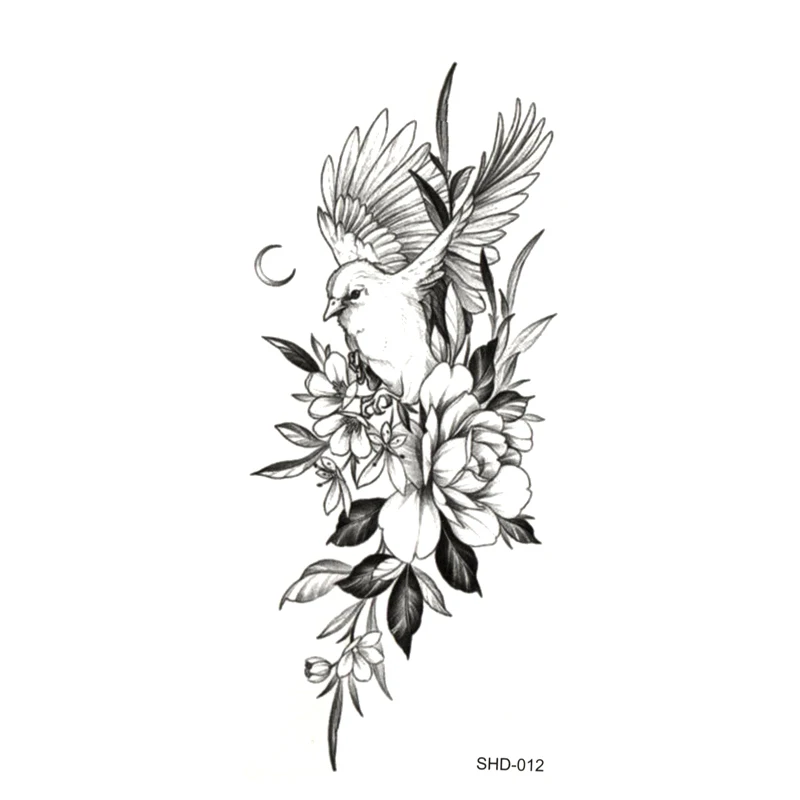 Три стиля, серый цветокПтицаовечья водостойкая временная татуировка, Мужская искусственная наклейка