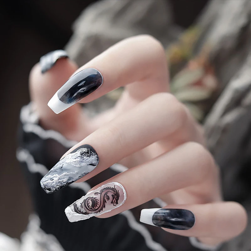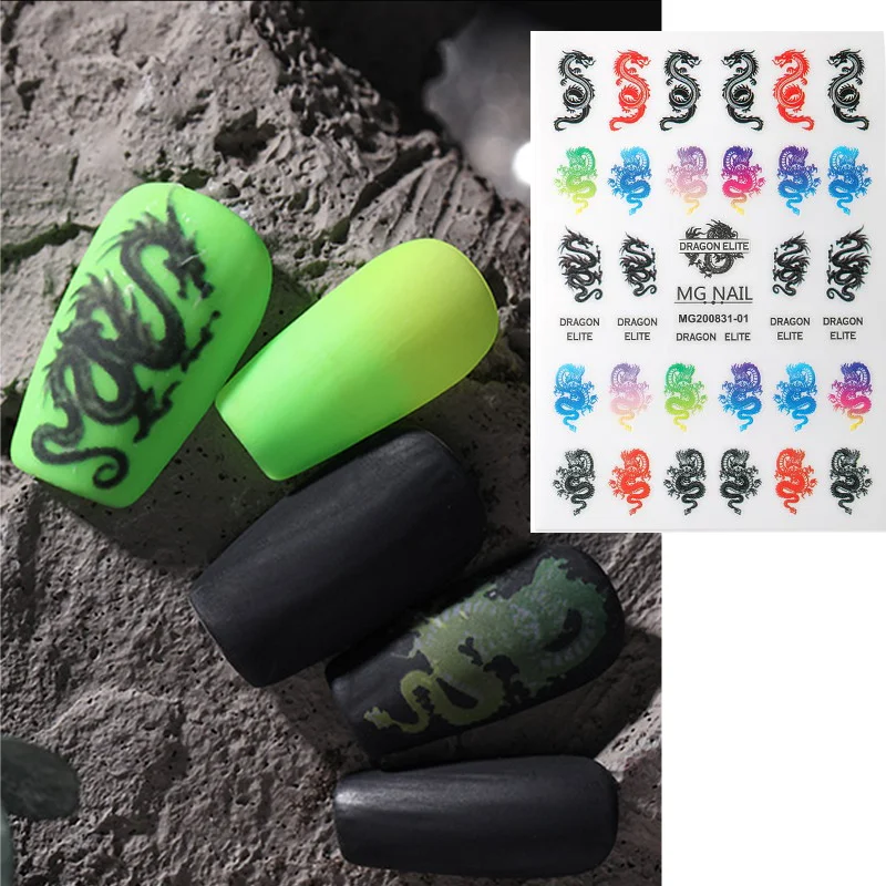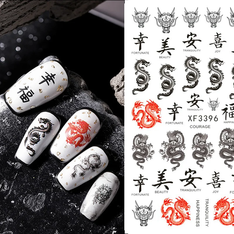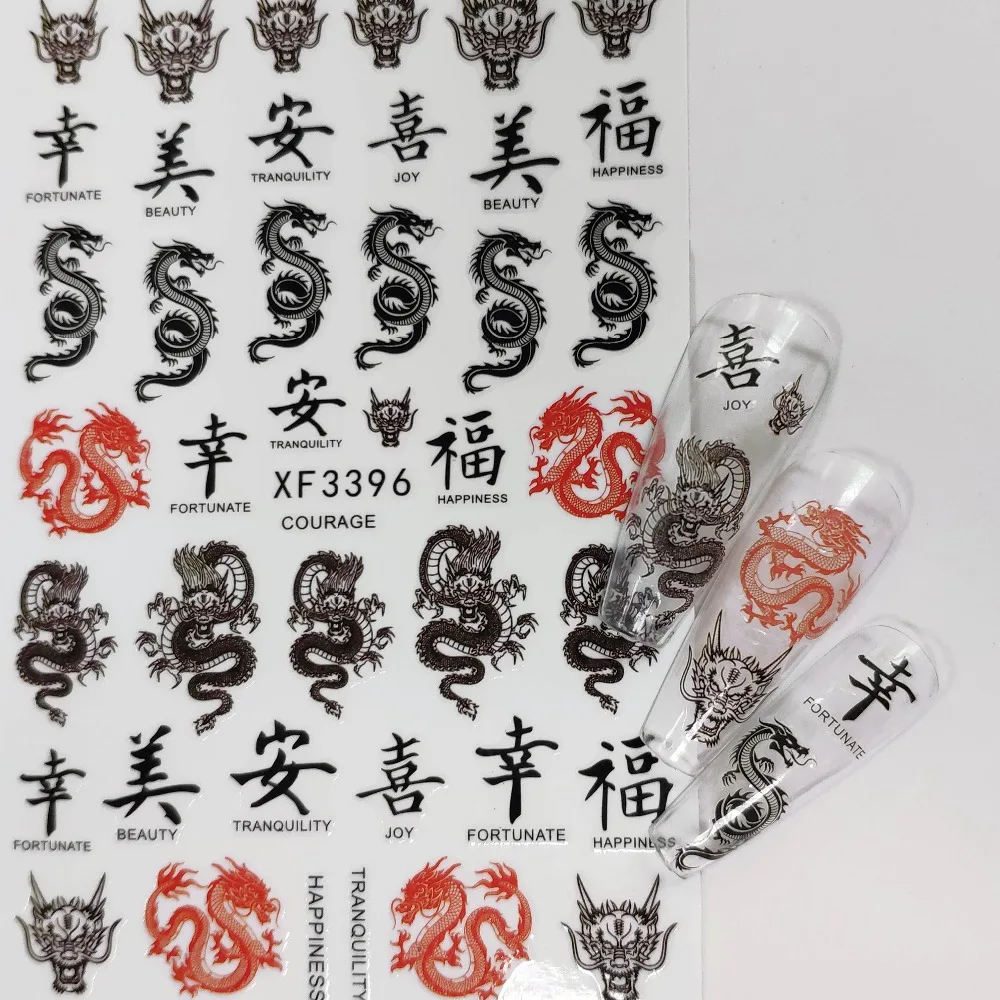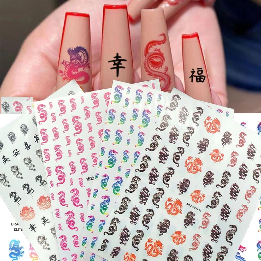 3D наклейки для маникюра с китайским красным, черным драконом, наклейки для ногтей в виде змеи, самоклеящиеся наклейки для ногтей, акриловые украшения для ногтей