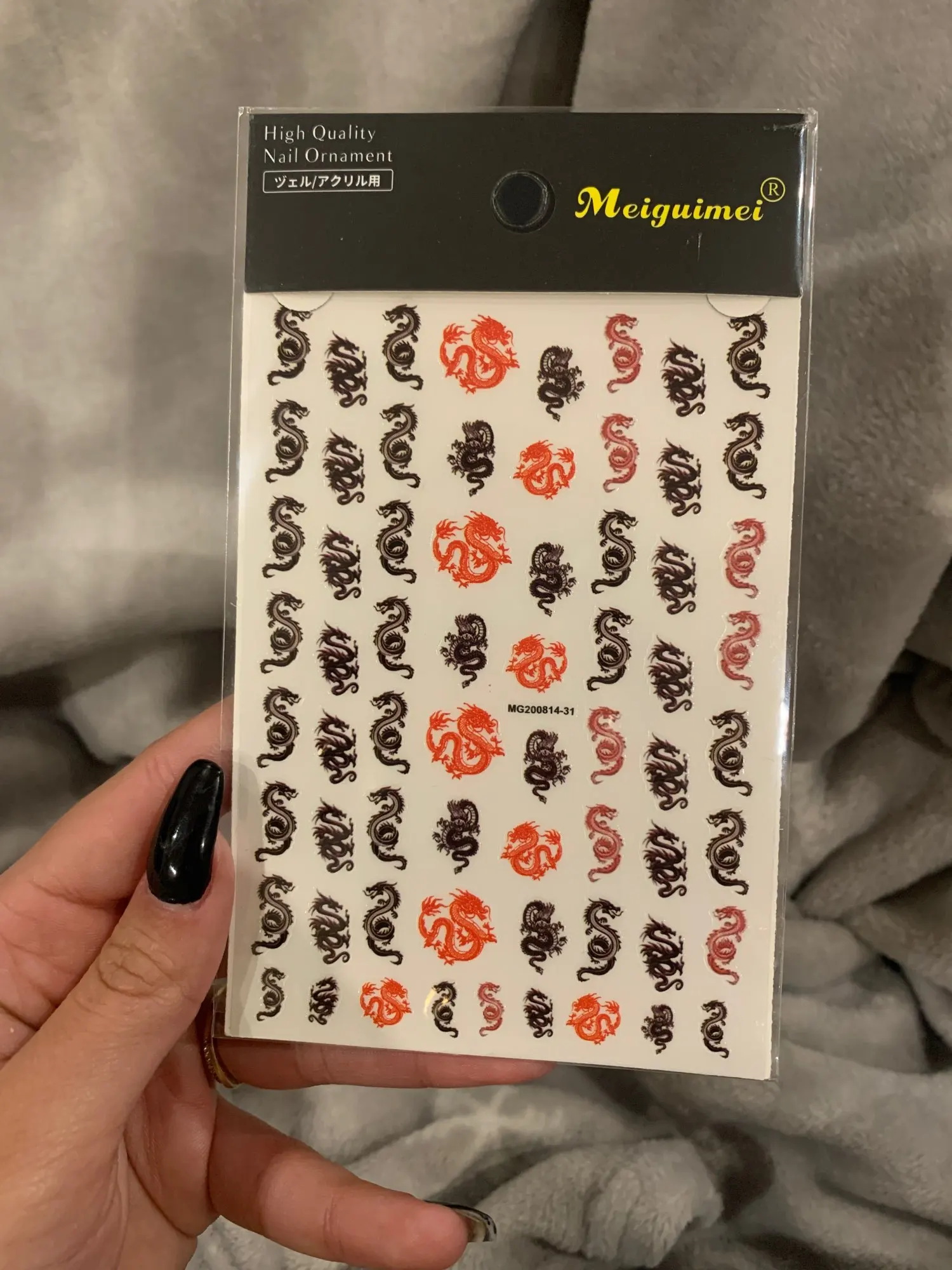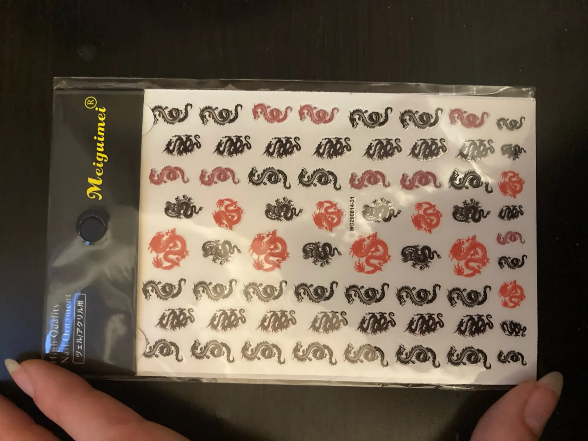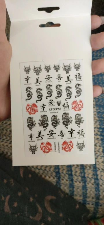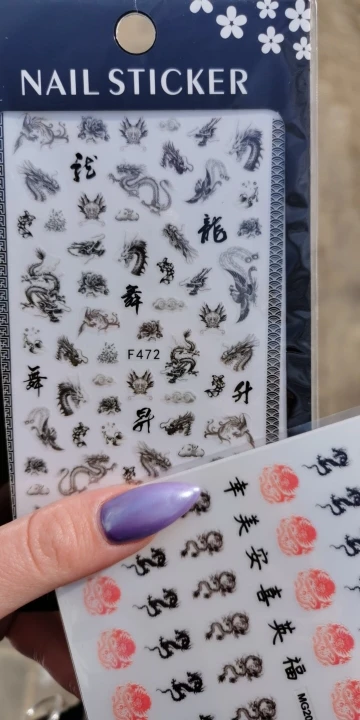 На фото конечно получше, но в целом для дизайна нормально. Как оказалось у клиентов есть тяга к китайским драконам))) Заказывала 11.11, пришло 03.12 за что спасибо прям быстро. И перед новым гоом клиентка прям хотела маникюр с драконом.