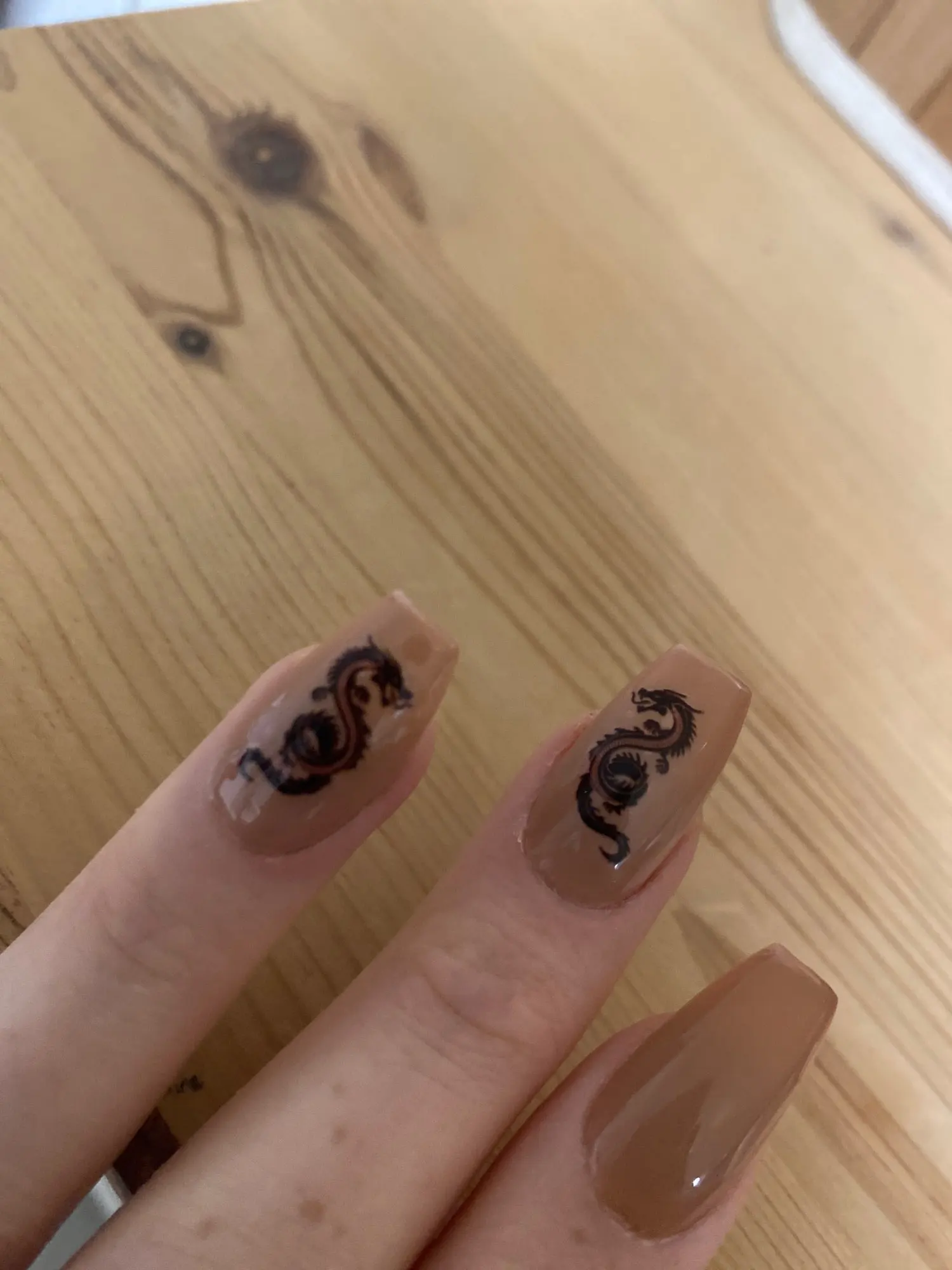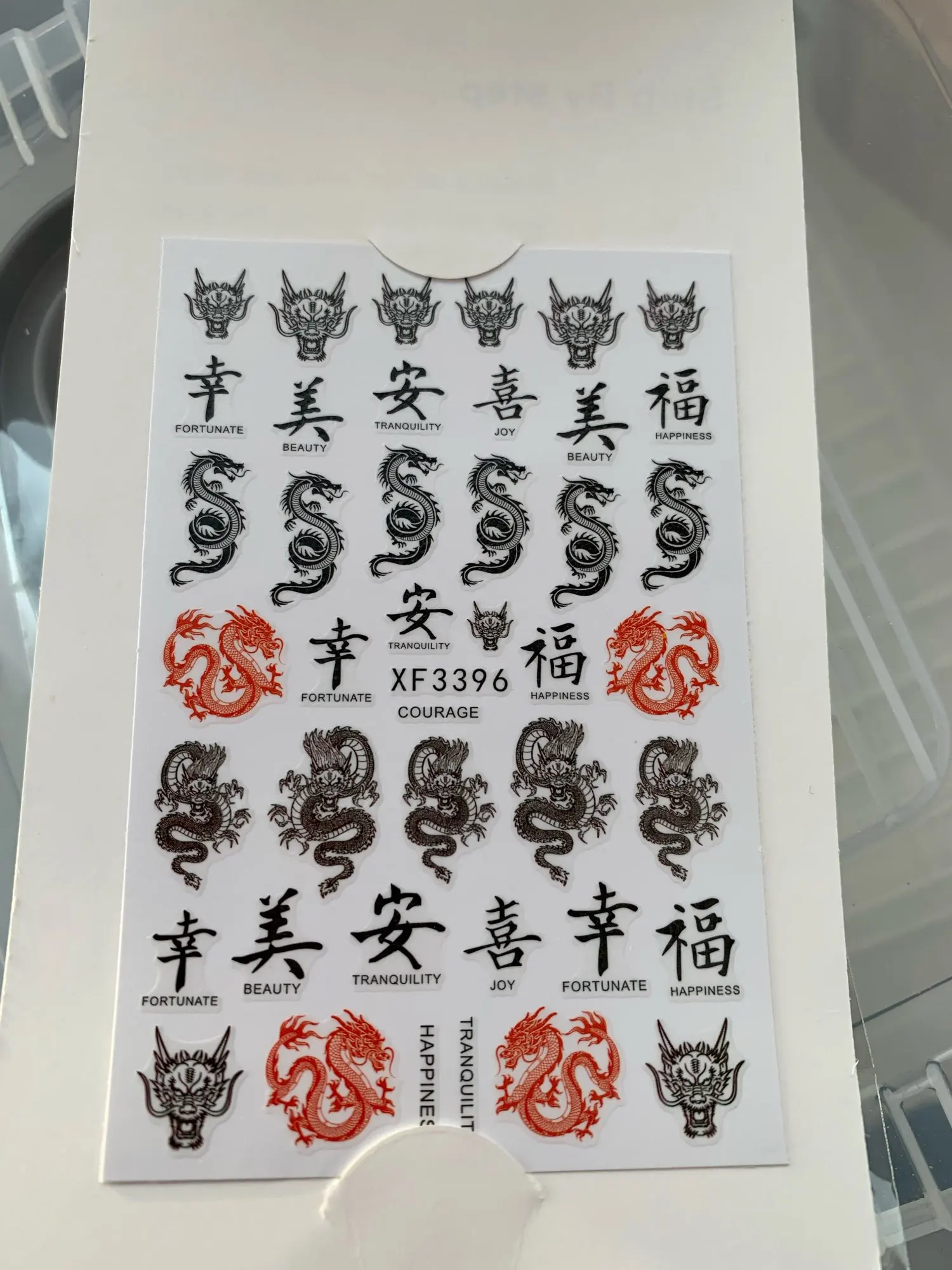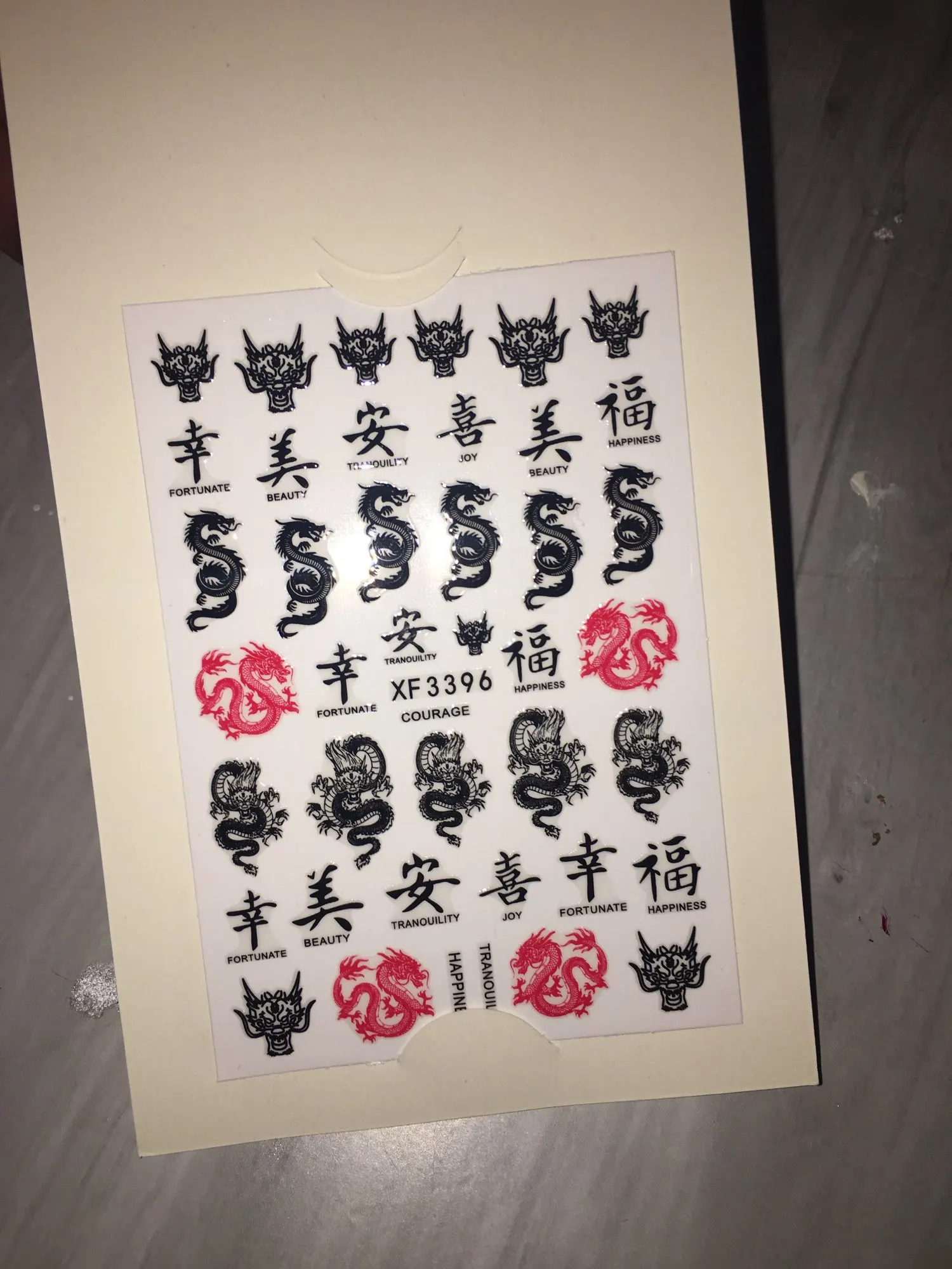 На фото конечно получше, но в целом для дизайна нормально. Как оказалось у клиентов есть тяга к китайским драконам))) Заказывала 11.11, пришло 03.12 за что спасибо прям быстро. И перед новым гоом клиентка прям хотела маникюр с драконом.
