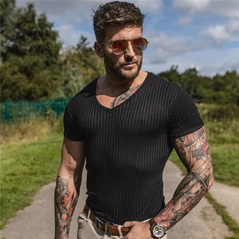 Футболка мужская с V-образным вырезом и коротким рукавом