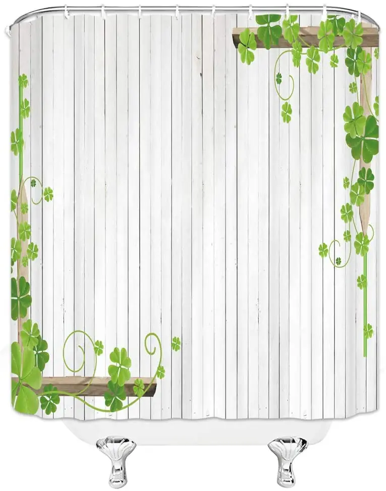 Занавески для душа с зелеными растениями и белыми деревянными досками, весенние Ландшафтные шторы с зелеными листьями для ванной комнаты, аксессуары для дома и ванной, тканевые занавески