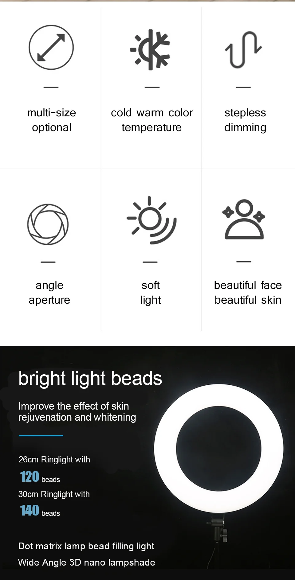 Это очень круто!Я заказала на 160, диаметр 26 см.На самом деле ее рост раздвигается до 210 м.В комплекте идет все,пульт управления,подставка для телефона,чехол,еще много прибамбасов.Режимов много,не представляю сейчас съемки без нее,без всяких дополнительных светильных приборов,делает свое дело.Качество на высоте,все металл,спасибо продавец большое,доставка неделя.