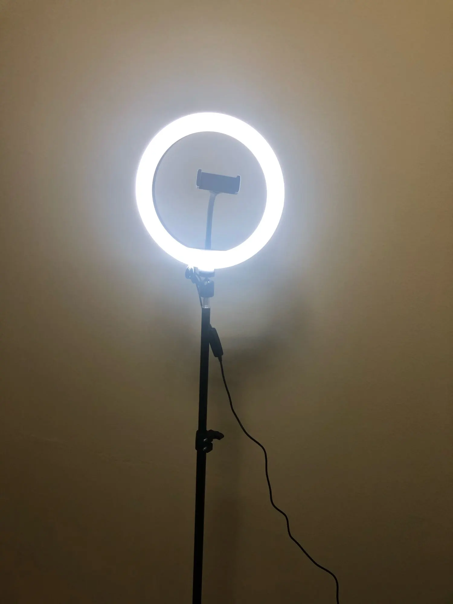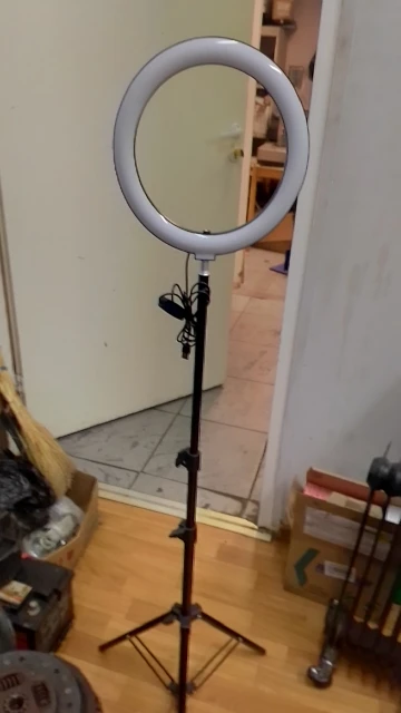 Качественный штатив и лампа. Штатив 2 метра,кольцо 26см. Мощность лампы 12вт. Есть три режима света:белый,тёплый желтый,тёплый белый. Лампа ярко светит. Первый раз заказала с усиленным штативом, а не с универсальным. Детали качественные и прочные. В комплекте был чехол и пульт. Доставка 14 дней,отслеживалась. Довольна.Рекомендую к покупке.