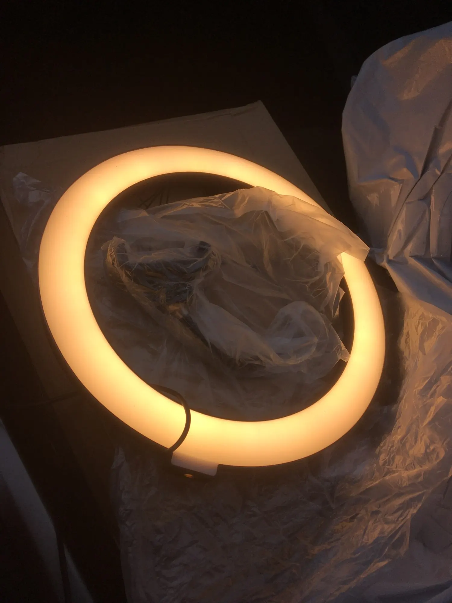 Отлично, как то, что я хочу, круг проходит все направления, и он имеет 3 цвета, которые, я надеюсь, вы можете увидеть на фотографиях (белый, теплый белый или теплый желтый и желтый). Также вы можете увидеть размер круга на фото (я измерил его в руке, чтобы быть более точным), и у него есть ключ, который я еще не знаю, что и как его использовать; Я думаю, что сначала нужен мой телефон.