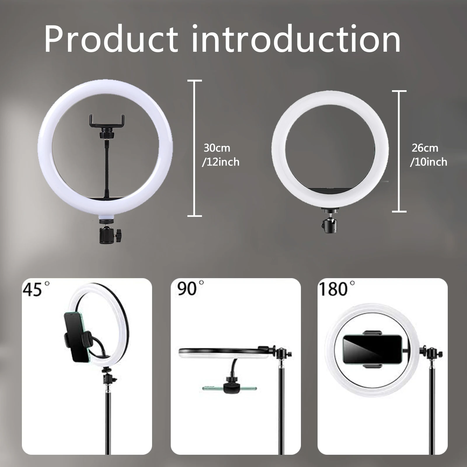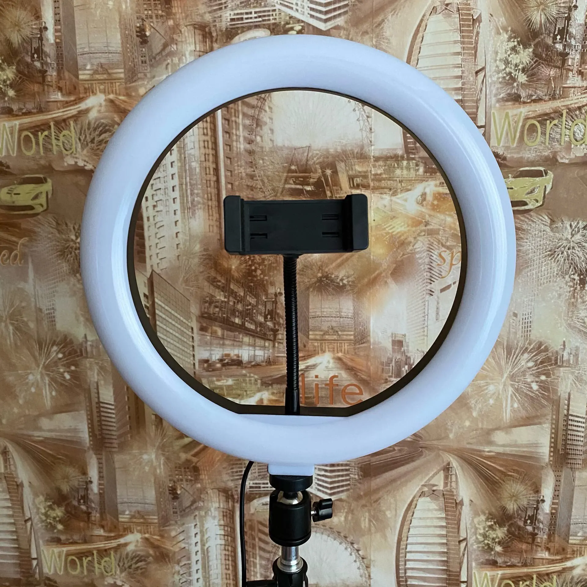 Кольцевой светодиодный светильник для селфи, 10 "26 см кольсветильник лампа для фото и видео, со штативом для телефона, с регулируемой яркостью