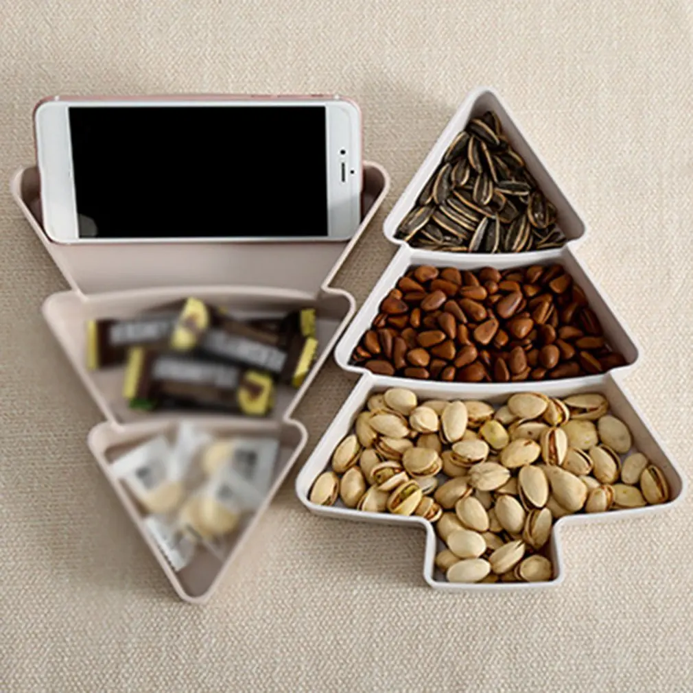 Маленькая пластиковая тарелка для сушеных фруктов с отделением для ёлки