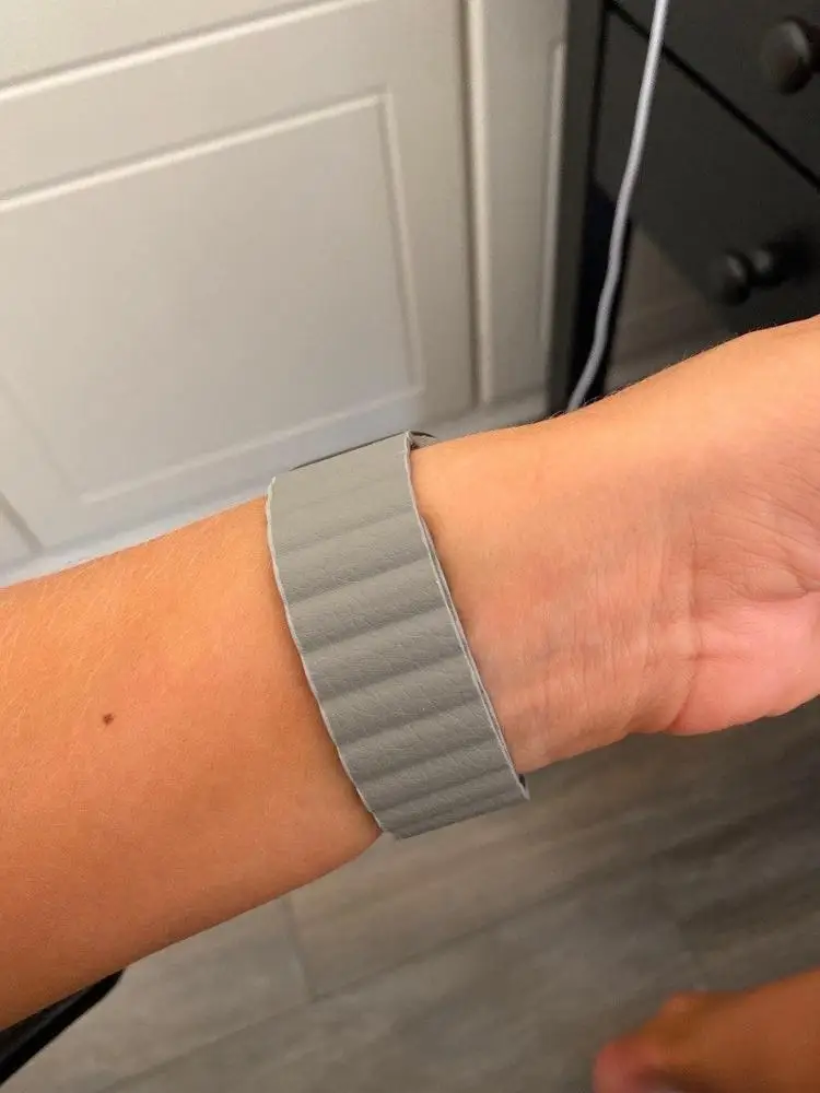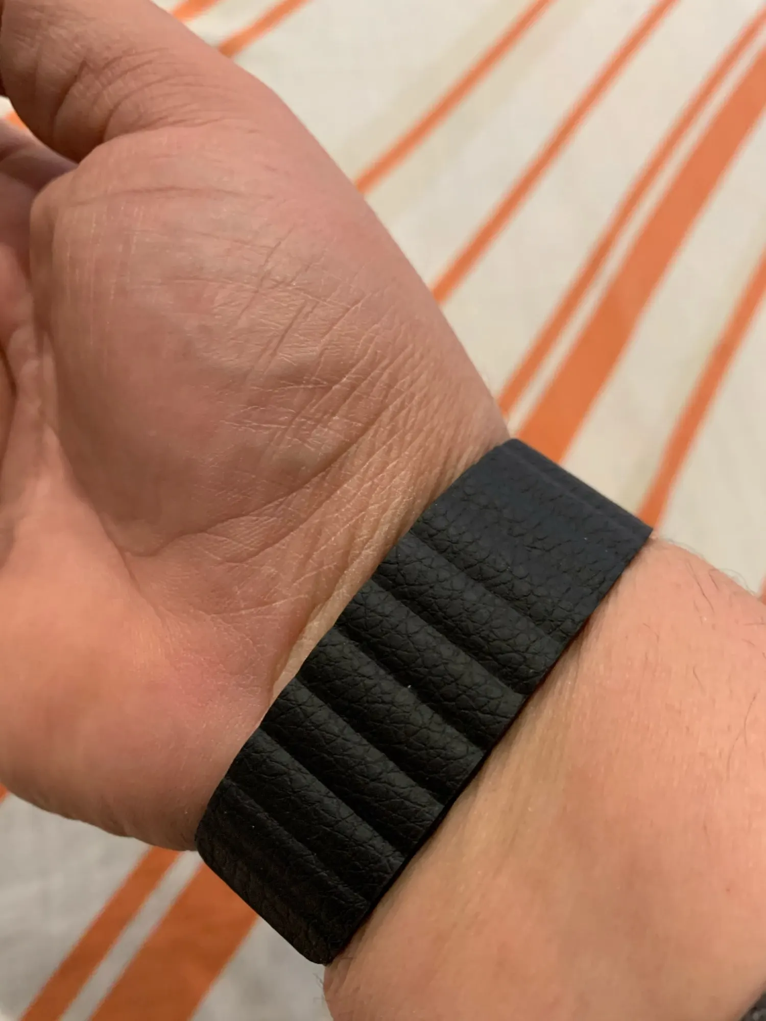 Классный качественный ремешок. Не успел его установить, дочка стащила и стала складывать котлетой. Понравилось место соединения с часами, как и должно быть. Заусенцев нет, магниты сильные и находятся во всех "ячейках". Выбрал себе новый циферблат под него, считаю цвет очень стильный (купил его для более менее приличных переговоров с клиентами вместо спортивного Nike).