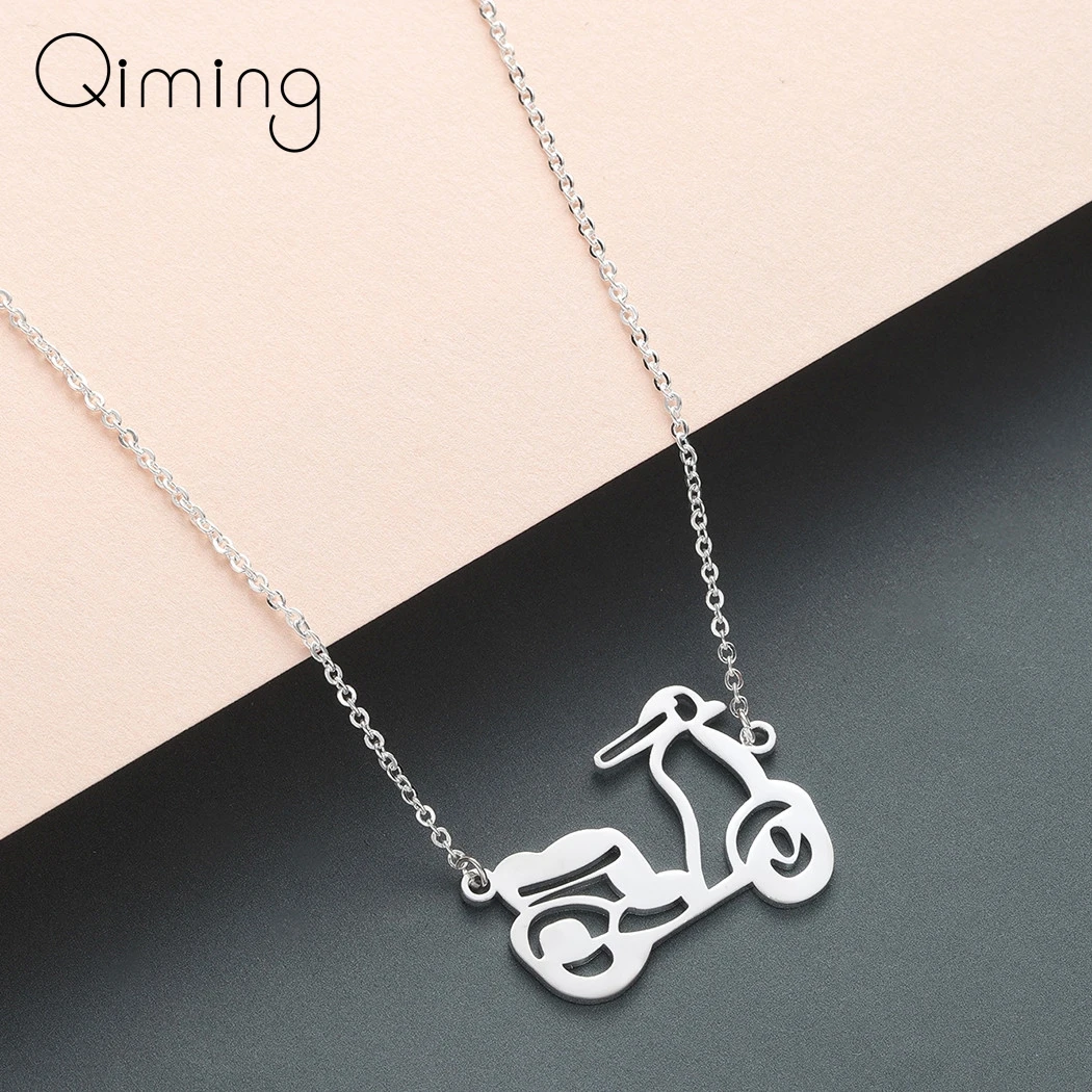QIMING, уникальный дизайн, ожерелье с мотоциклом из нержавеющей стали, Ретро стиль, оптовая продажа ювелирных изделий для детей, женщин и мужчин, подарок