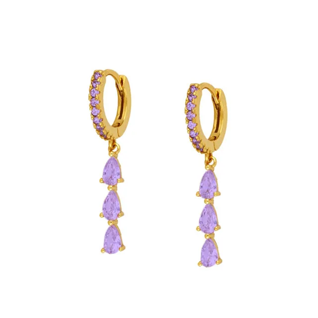 Серьги-кольца женские, медные, с кристаллами в виде капли воды