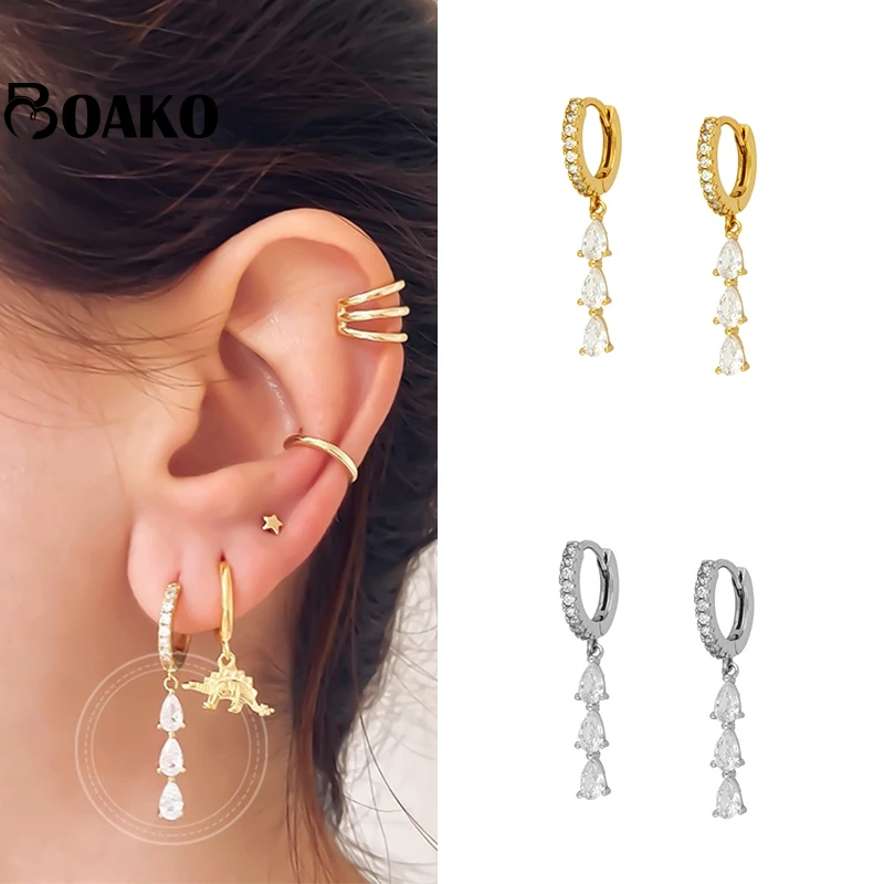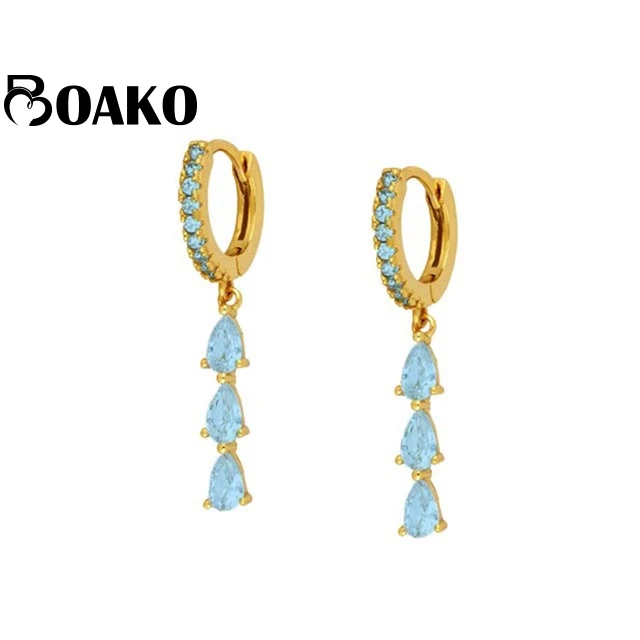 Женские серьги-подвески BOAKO, серьги-подвески золотистого цвета с цирконием и цепочкой, 2021