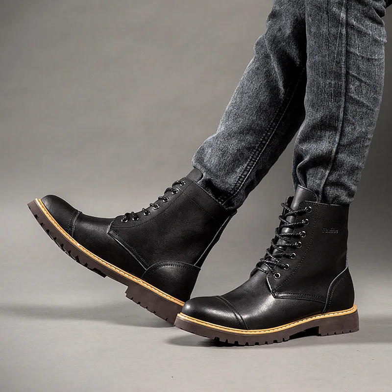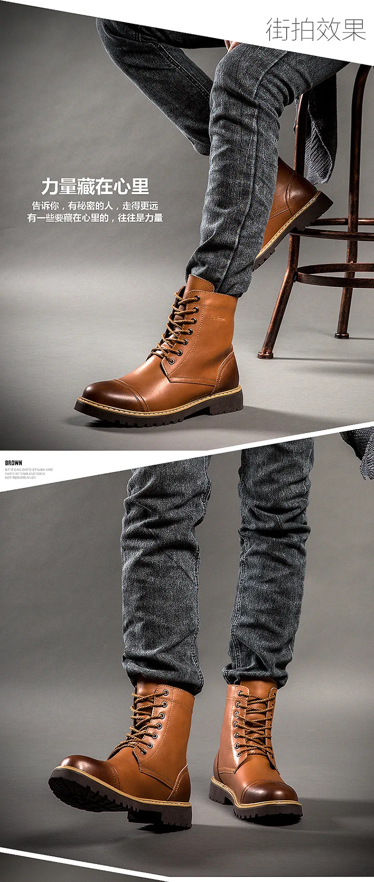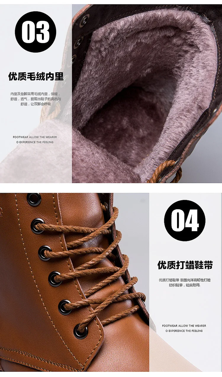 Ботинки мужские зимние на меху, из натуральной кожи, на шнуровке