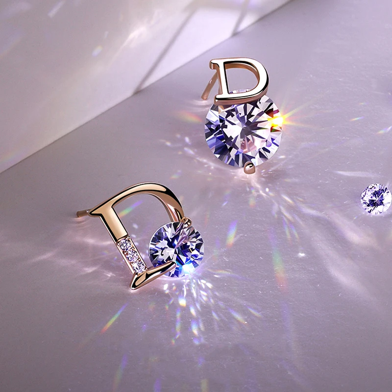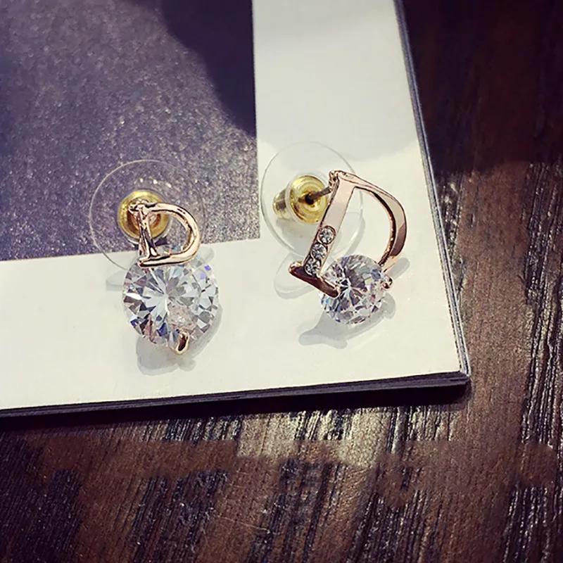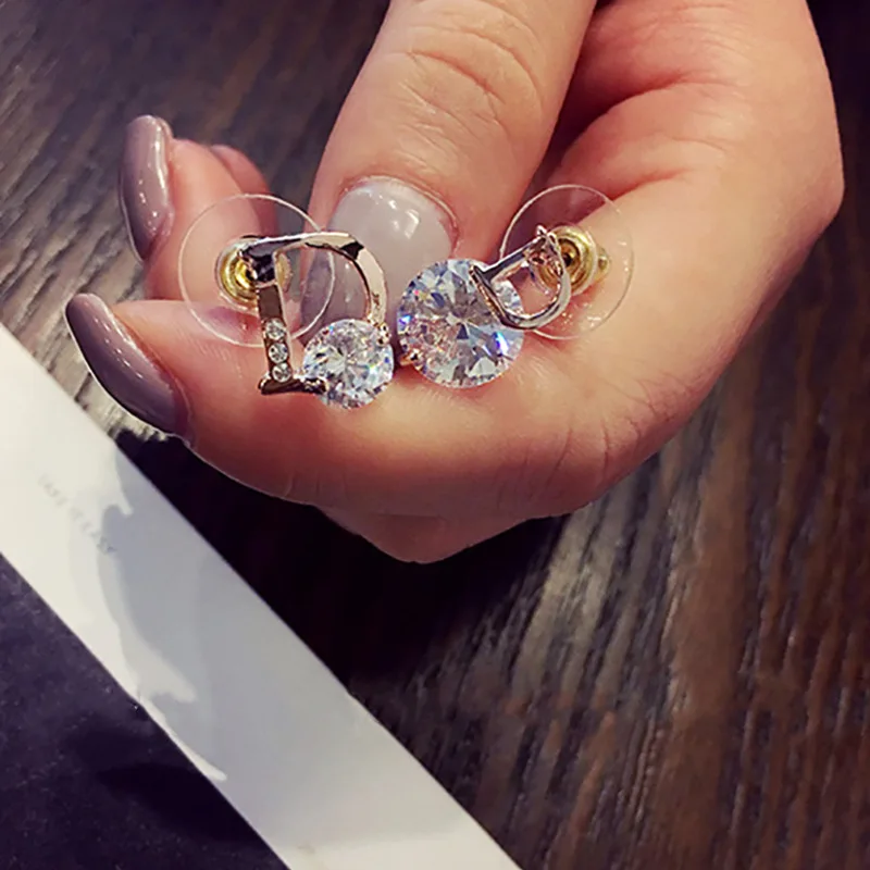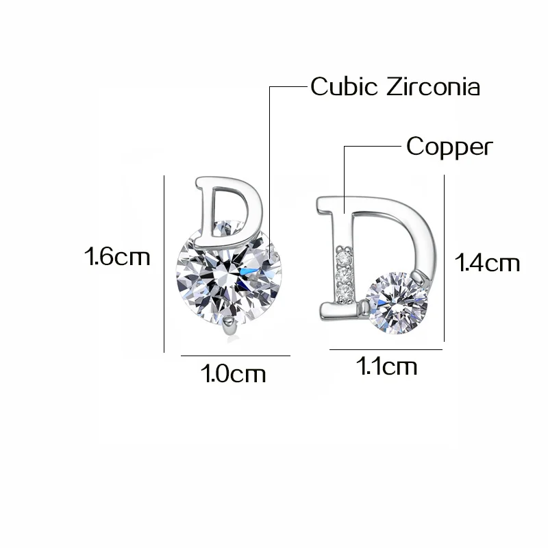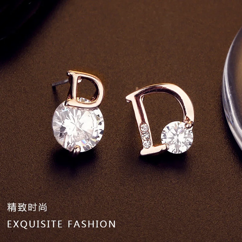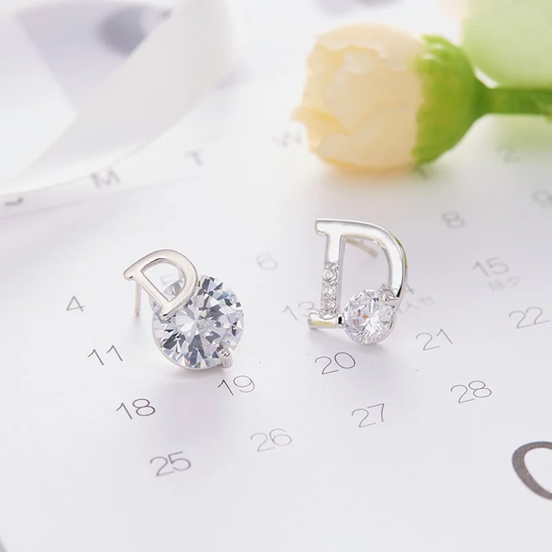 Европейские и американские модные блестящие асимметричные серьги с буквами D, женские серьги-гвоздики для вечеринки, модные женские серьги с кубическим цирконием