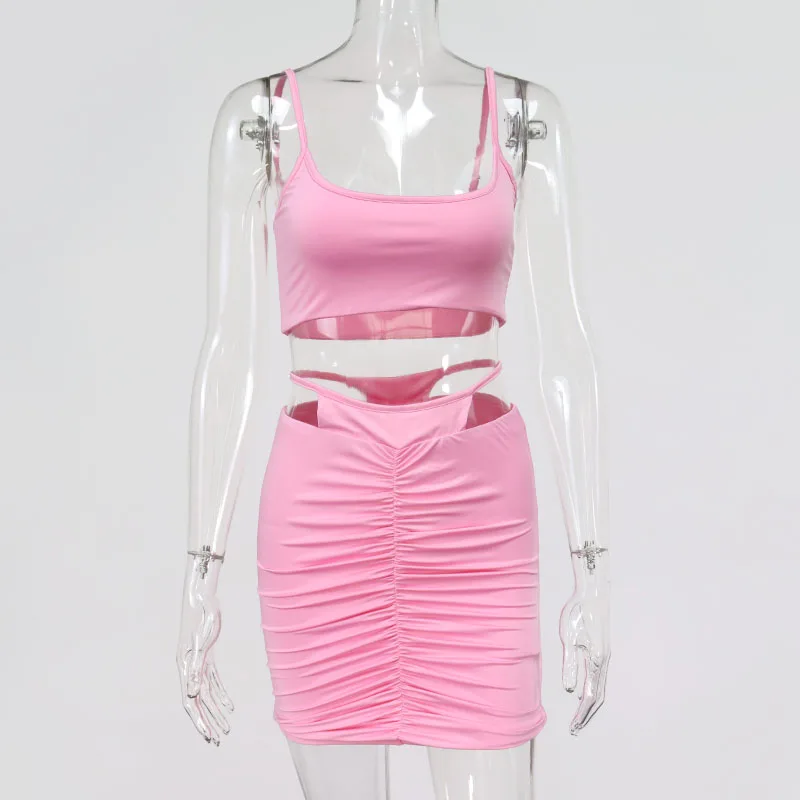 Невасия летний укороченный топ, открытая мини-юбка с рюшами, комплект из двух предметов, летние сексуальные вечерние Клубные наряды, одноцветные комплекты из 2 предметов 2020