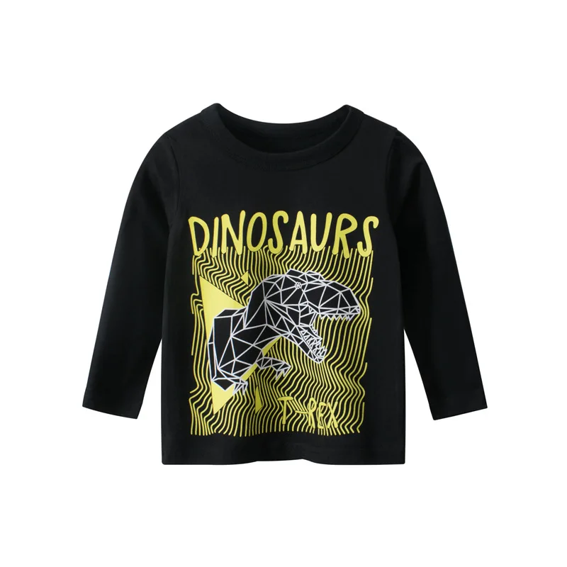 Детские футболки для мальчиков, топы с длинным рукавом для маленьких девочек, футболка, детские осенние хлопковые футболки с принтом мультяшного динозавра, машины, одежда