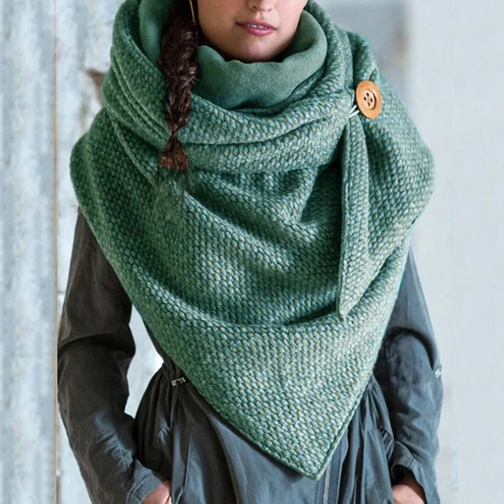 Женский плотный теплый шарф, однотонный мягкий шарф-платок на пуговицах со звездами, повседневный аксессуар для одежды на осень и зиму