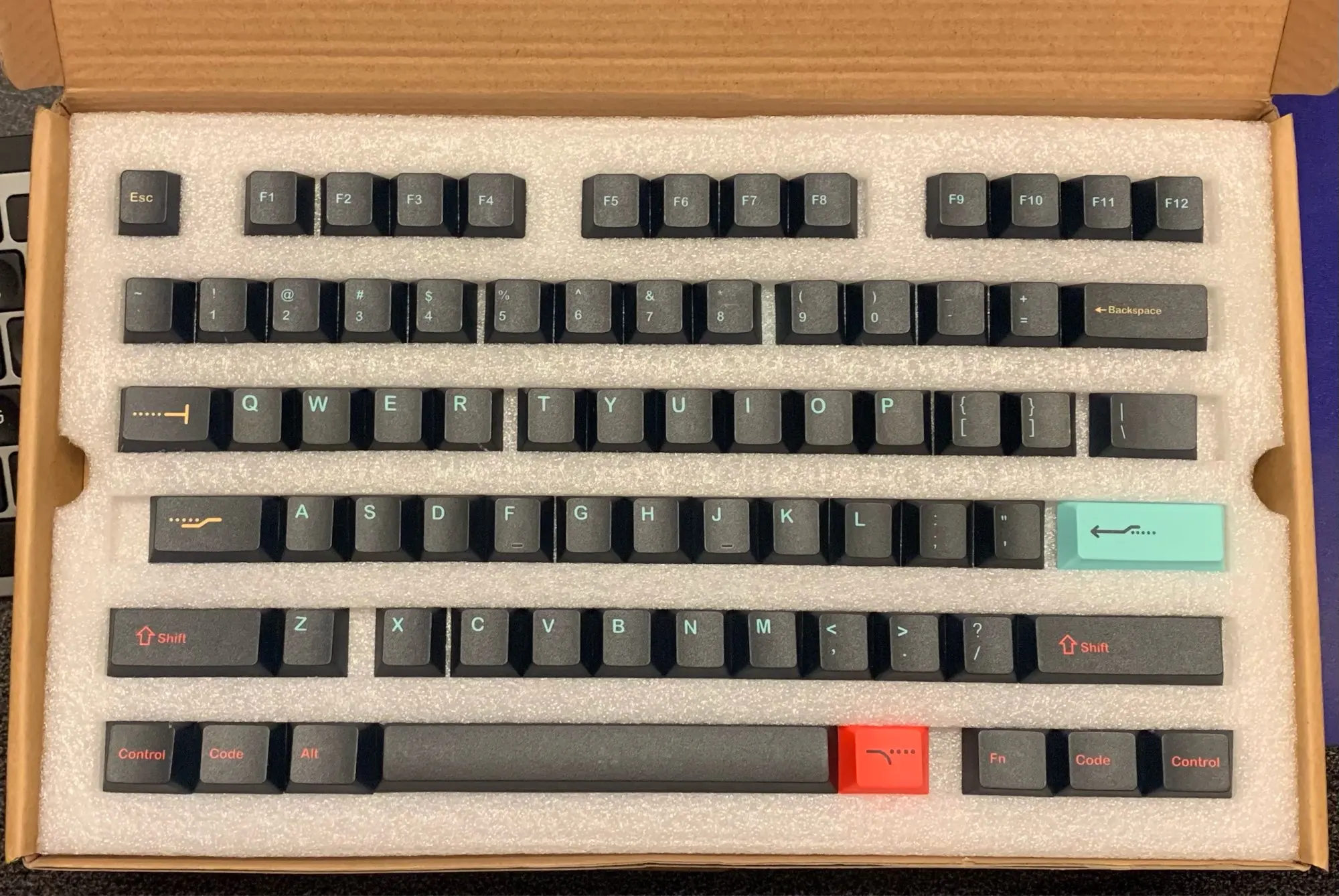 Во-первых, какой отличный комплект по такой цене. Очень нравится цветовая гамма. Товар был отправлен довольно быстро и доставлен через примерно 2 недели. Доставка была хорошо упакована. Установите это на моей механической клавиатуре и выглядит потрясающе. Только минус то, что у меня есть, что моя левая клавиша переключения имеет свое покрытие отскоченным (см. Последнюю картинку). Кроме того, я доволен и мне интересно узнать, как долго это продержится.
