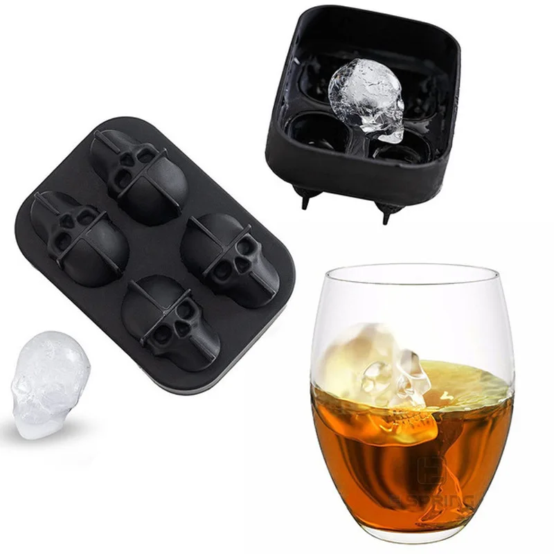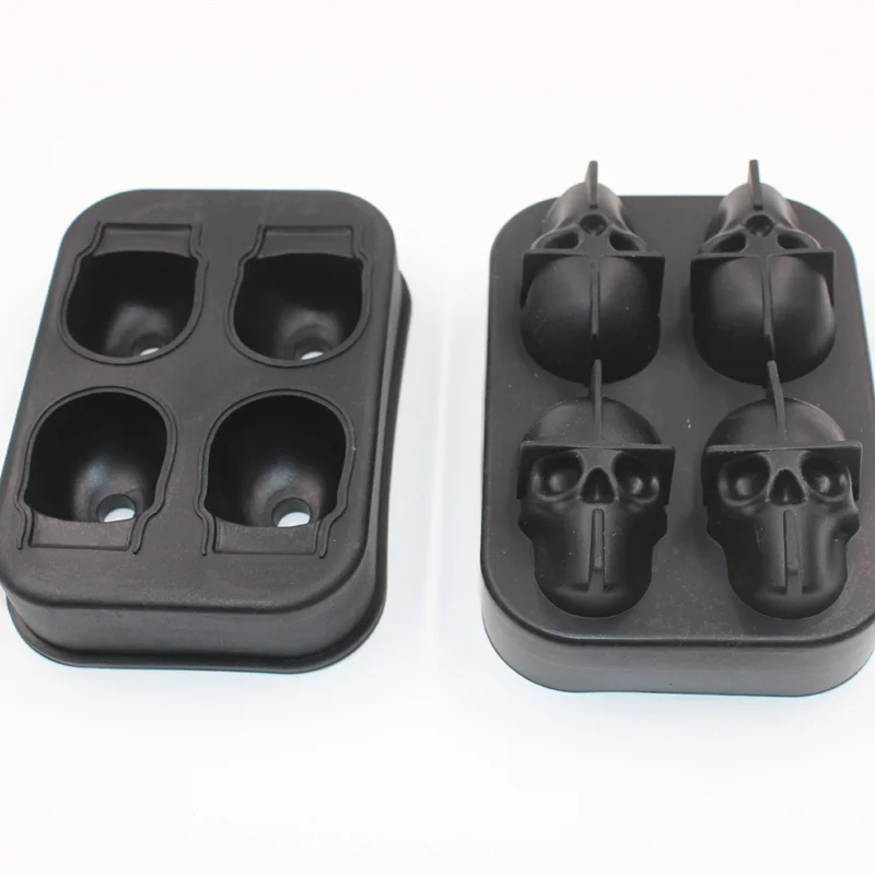3D Силиконовый лоток для льда с черепом, 4 ячейки, силиконовый лото...
