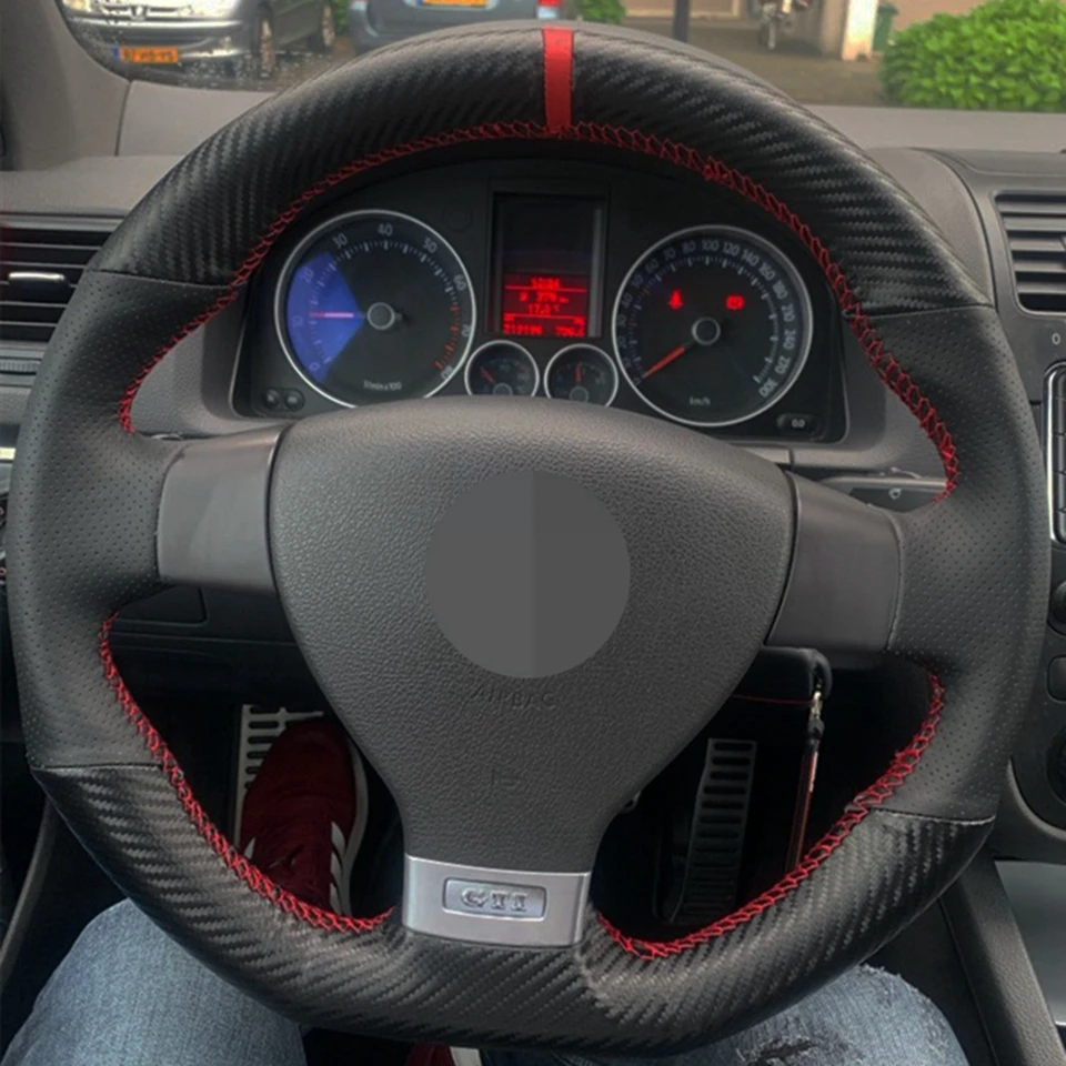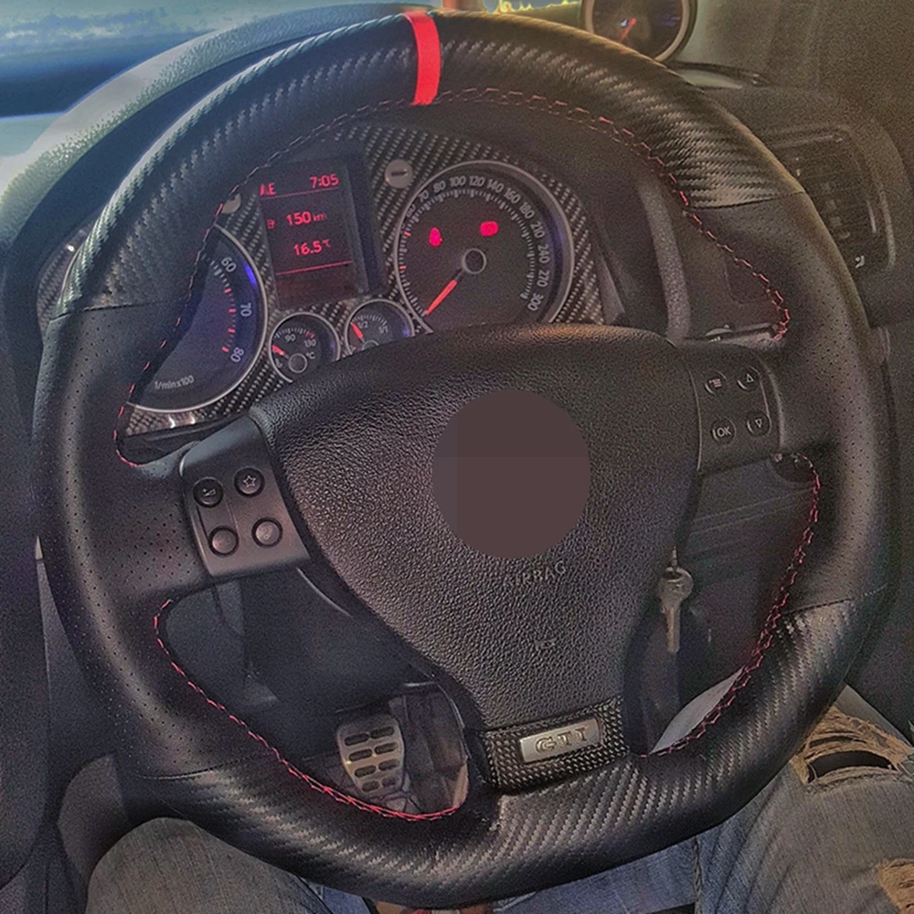 Чехол рулевого колеса автомобиля черная кожа из углеродного волокна для Volkswagen Golf 5 Mk5 GTI VW Golf 5 R32 Passat R GT 2005
