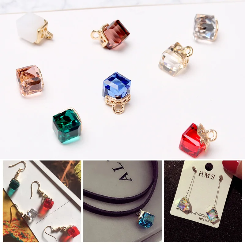 10 шт. 1,5x0,8 см бусины подвеска из металлического сплава прозрачный кристалл AB квадратной формы амулет со свободно насаженным бисером для ювелирных изделий серьги