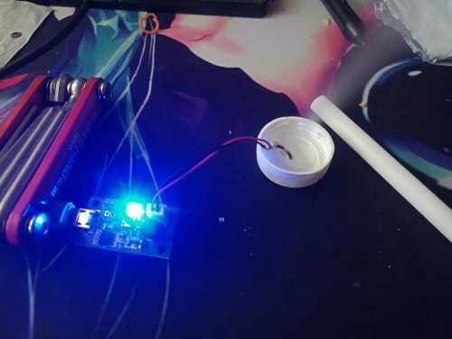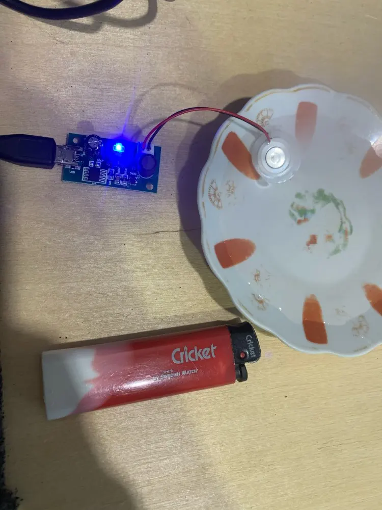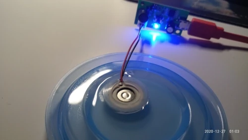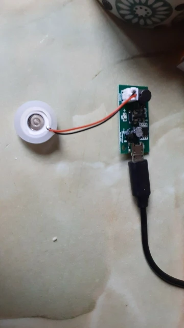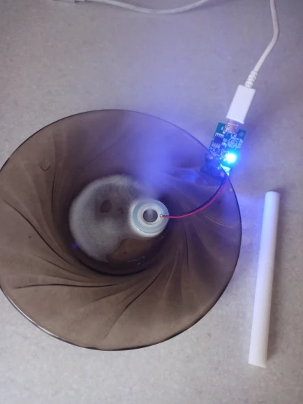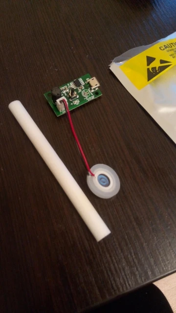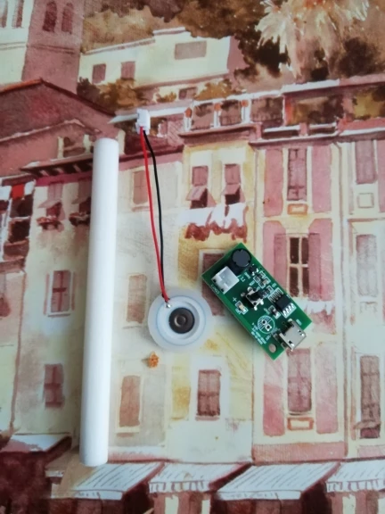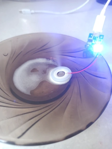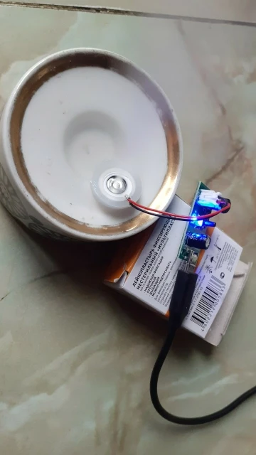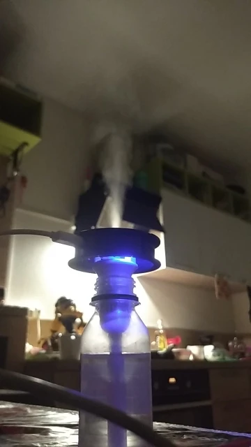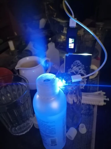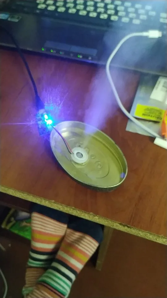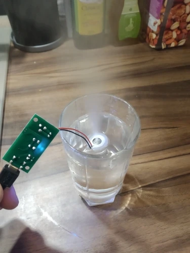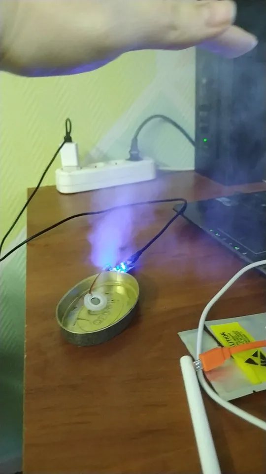 Прикольная штука. Только нижняя часть излучателя должна быть в воде. Но он тонет. Нужно придумывать систему подачи воды. Интересная игрушка. Сначала думал не работает, пока не нажал кнопку))) Продавцу спасибо!