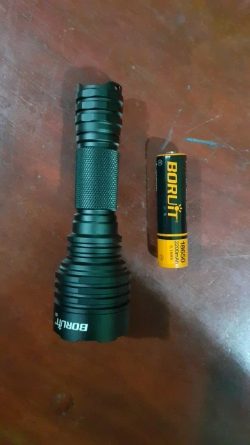 Фонарик top обеспечивает то, что обещает, пришел полный комплект, фонарик + аккумулятор + зарядное устройство. Свет хорошо закрыт, идеально подходит для дальних расстояний, на фото справа вы можете увидеть конвой свет C8 + со светодиодом XPL hi, слева от boruit C8.