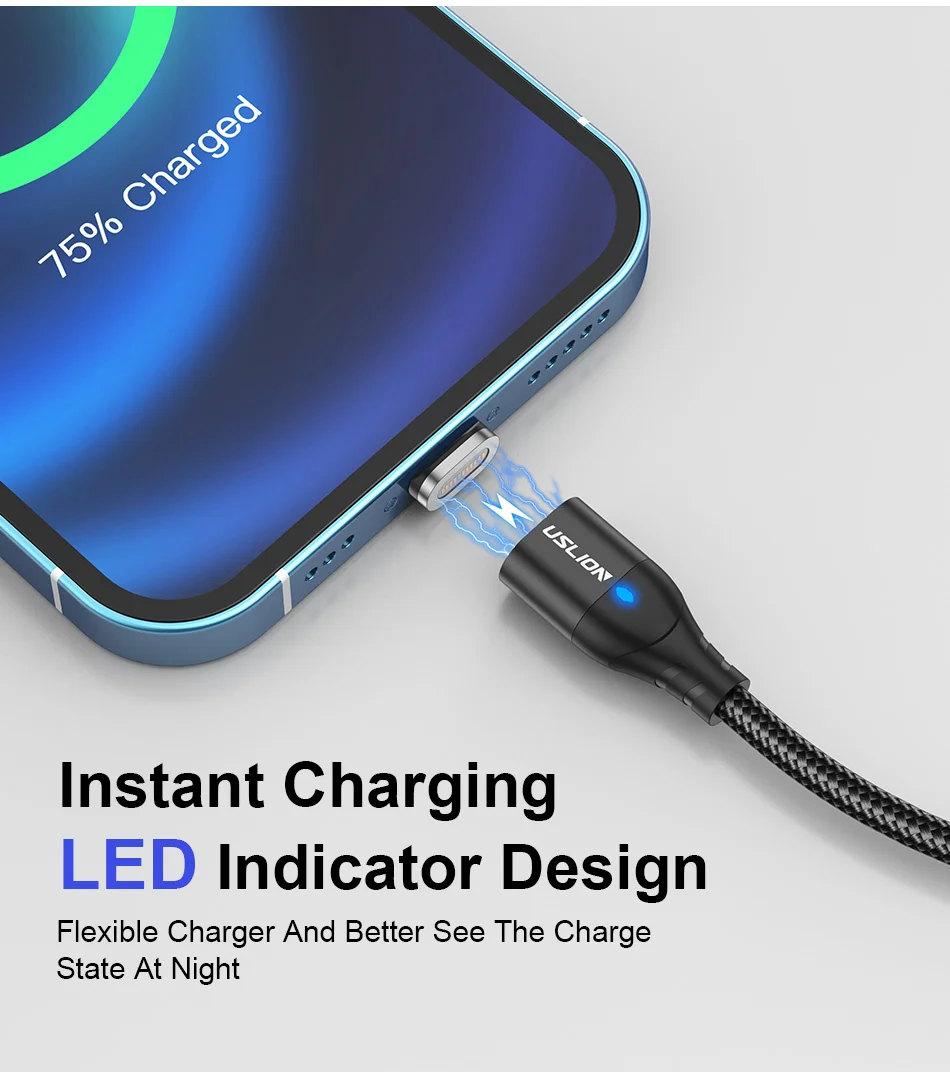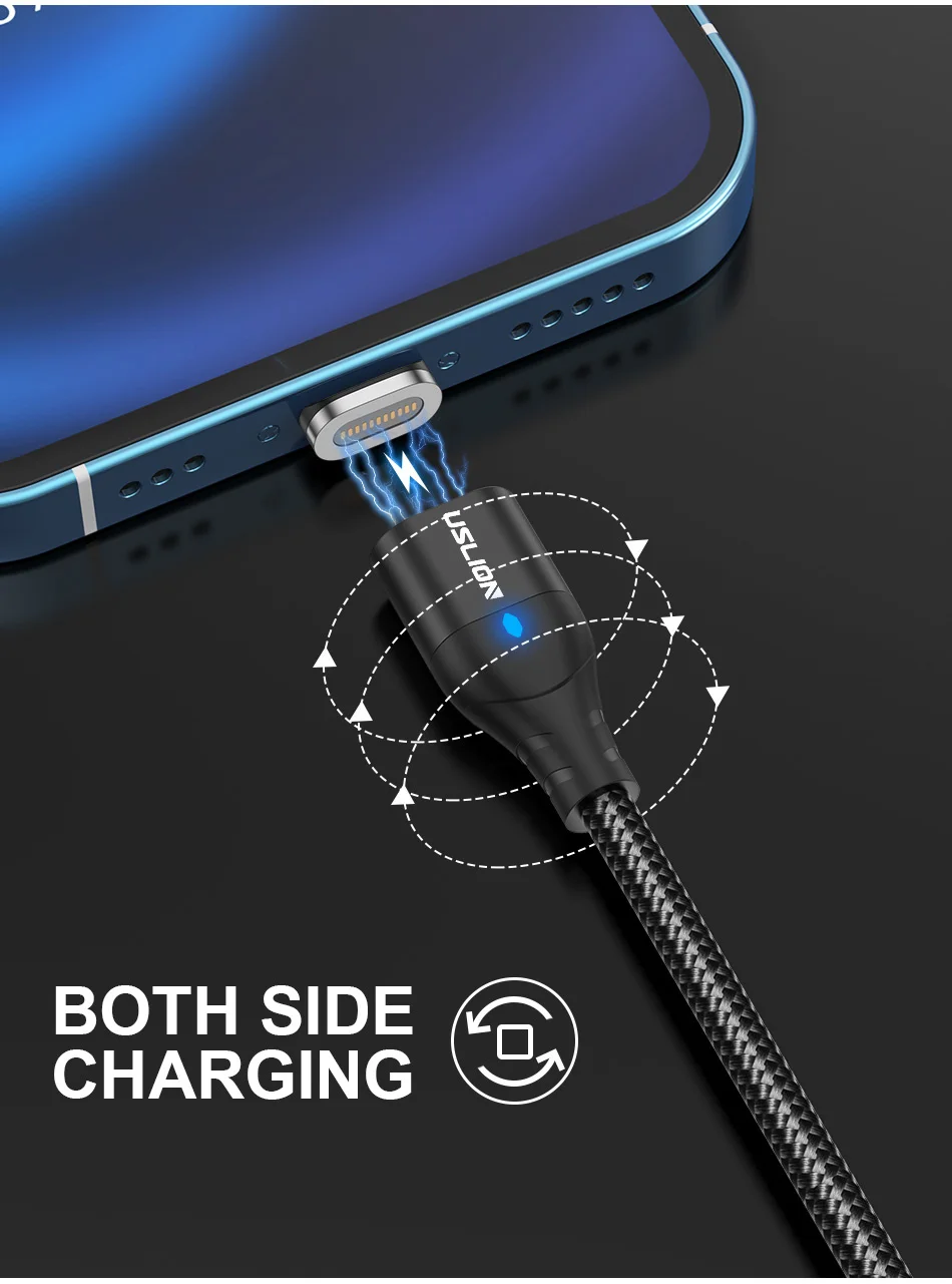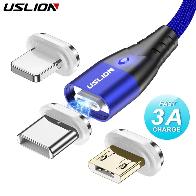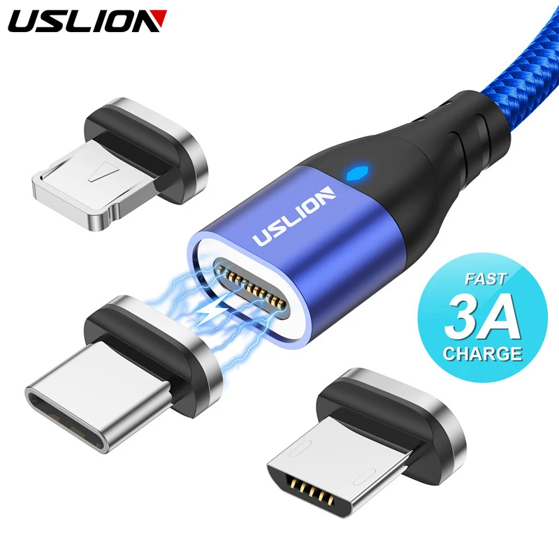 Магнитный кабель USLION Micro USB, для iPhone, Samsung, Xiaomi, Huawei, 3 А