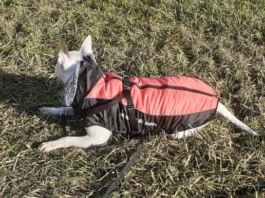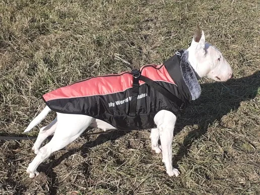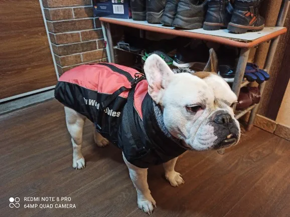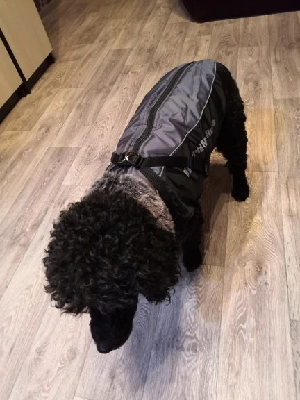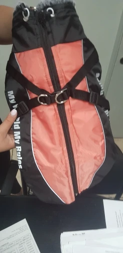 Najlepsze ubranko jakie widziałam, wykonanie mega profesjonalne, wspaniały materiał i futro wykończeniowe, super zamek plus zapinki dodatkowe i wszystko szelki na smycz. Pies to amstaff duży , waga ok 40 kg idealny rozmiar 6 XL.Do tego bardzo szybka przesyłka .