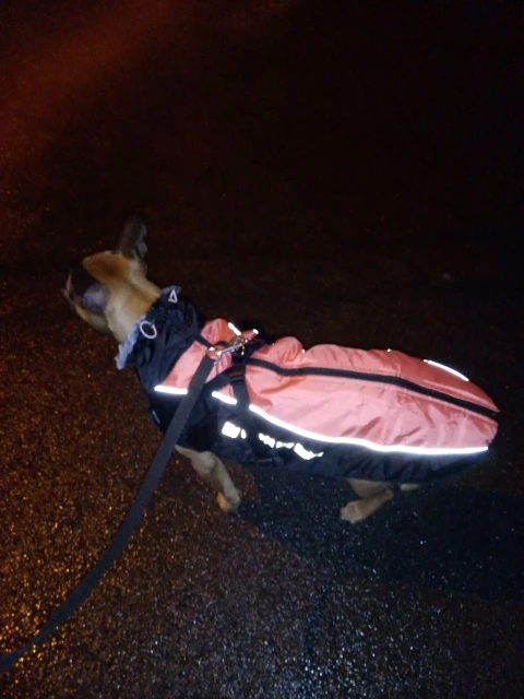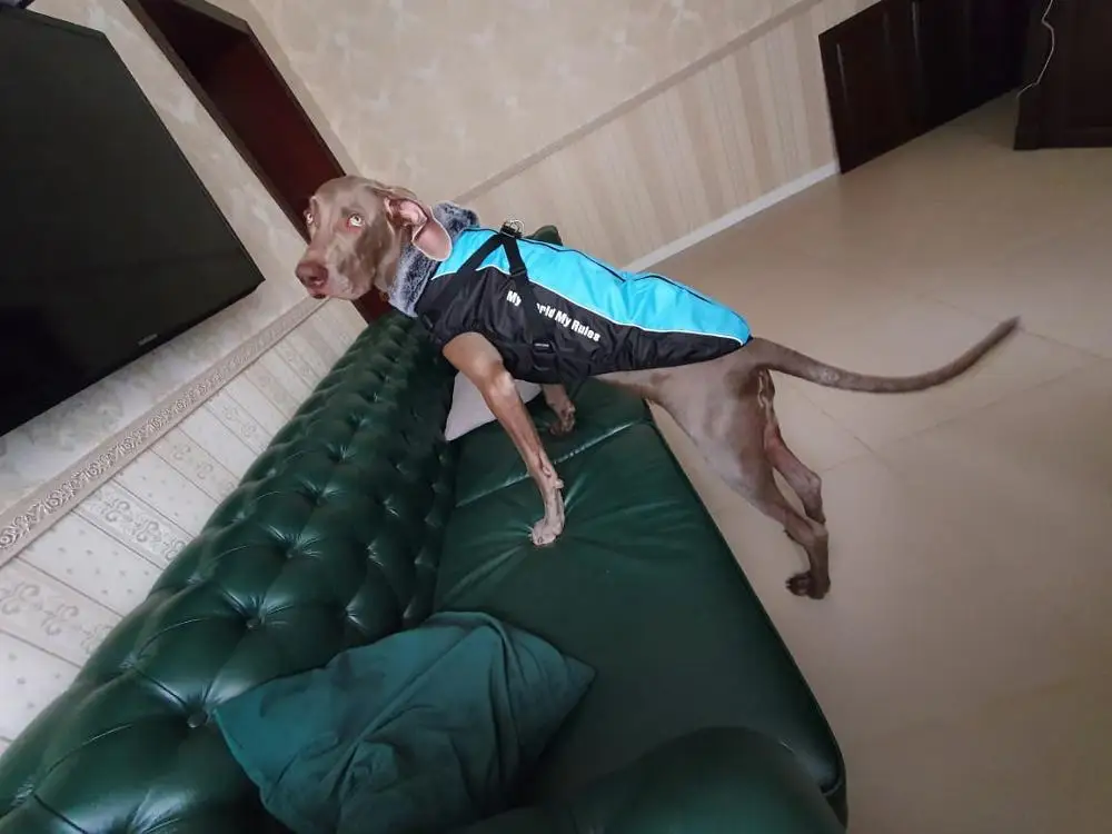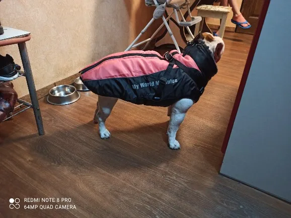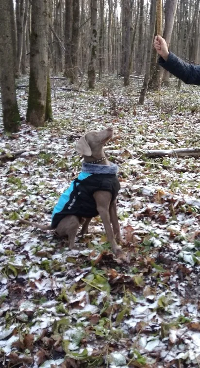 Качественная вещь и красивая. Сам бы носил. Собака не мёрзнет. Холод - не повод оставаться дома, если есть такие теплые и удобные вещи. Веймаранер 35 кг - 5XL - пришелся в пору. Куртка пришла за 2 недели. товар забирали на почте. Спасибо за отзыв выше от человека с веймаранером, при выборе опирались на него.