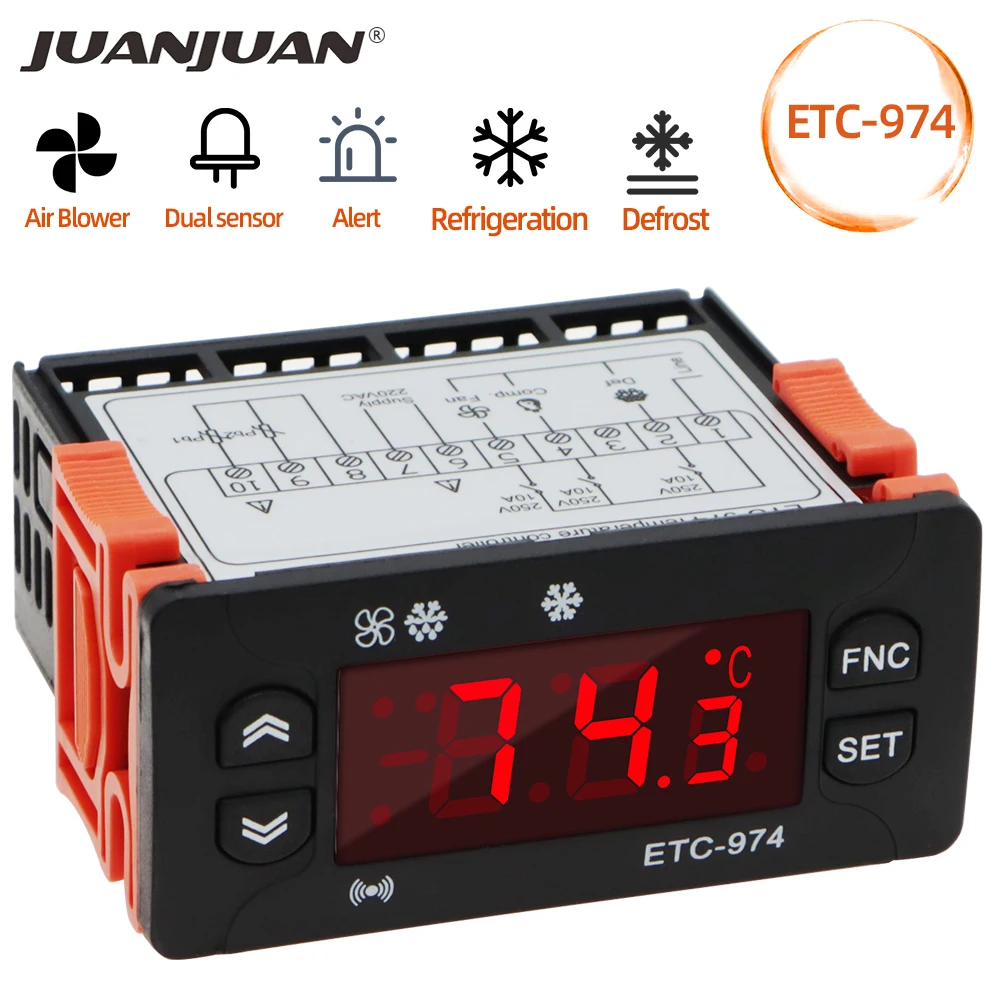 ETC-974 регулятор температуры для размораживания холодильника, Терморегулятор с двойным NTC датчиком, 220 В, Скидка 40%