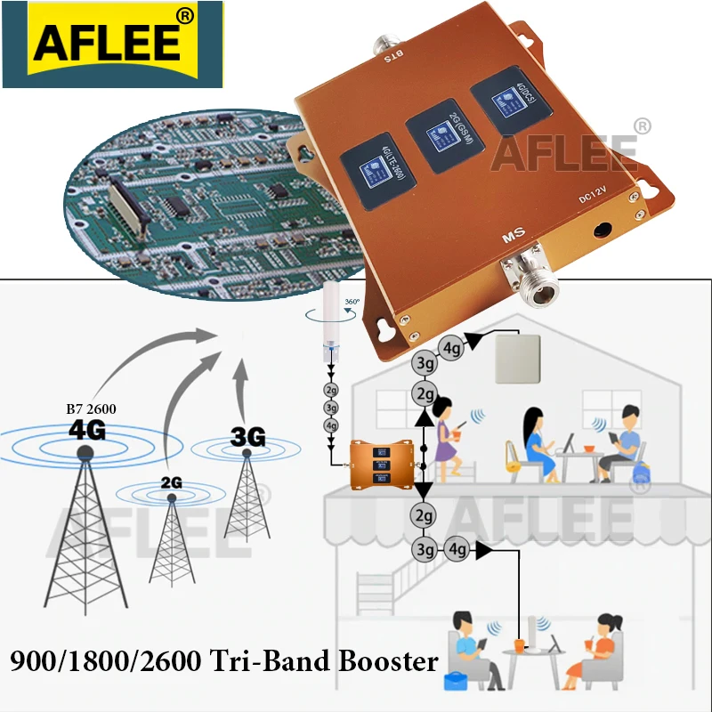 Новинка! Усилитель сотовой связи 4G 900 1800 2600 трехдиапазонный, репитер GSM 2G 3G 4G, Усилитель сотового сигнала сети DCS WCDMA LTE