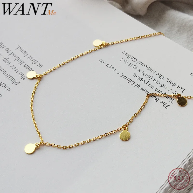 WANTME модное ожерелье из настоящего серебра 925 пробы милое круглое короткое подвесное ожерелье для женщин минимализм ювелирные изделия аксессуары