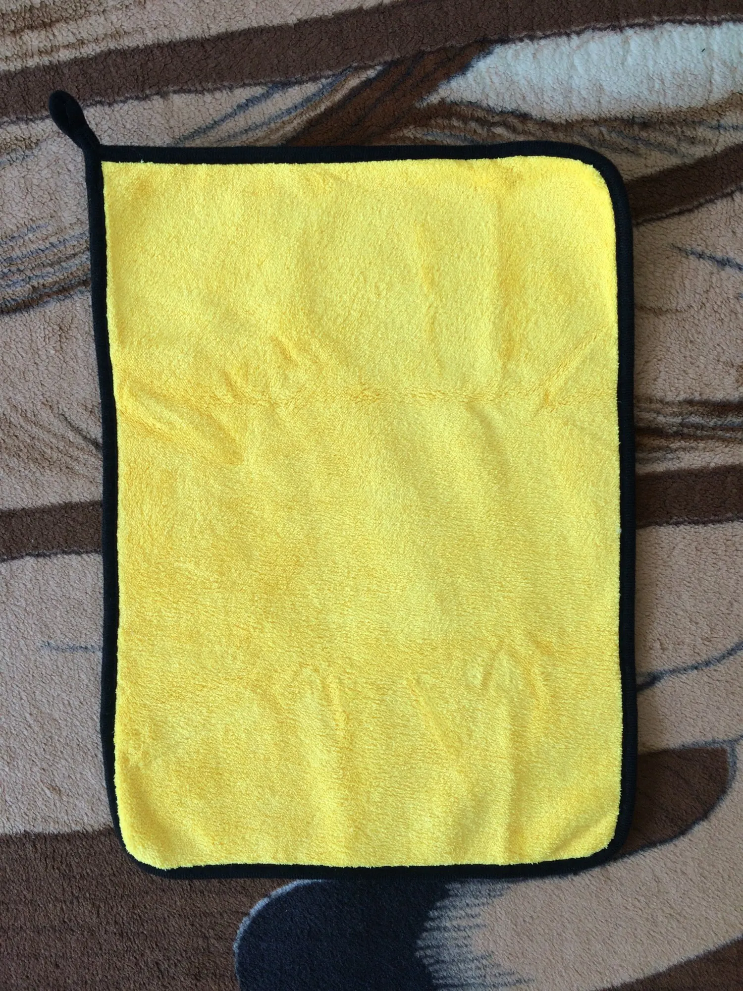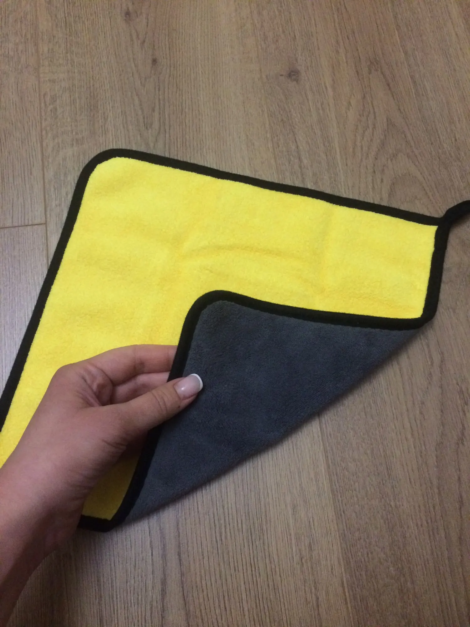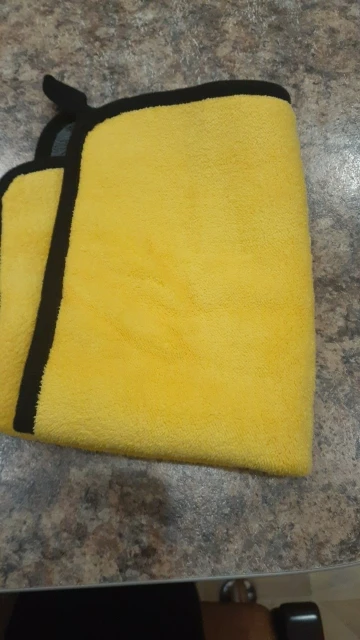 Тряпка пришла в Челябинск за 16 дней. Качество неплохое, но почему-то сама тряпка со всех сторон одинаковая, хотя на картинке и в других отзывах с одной стороны она жёлтая, и плюс есть петелька. Для меня это не критично, так что заказом я доволен.