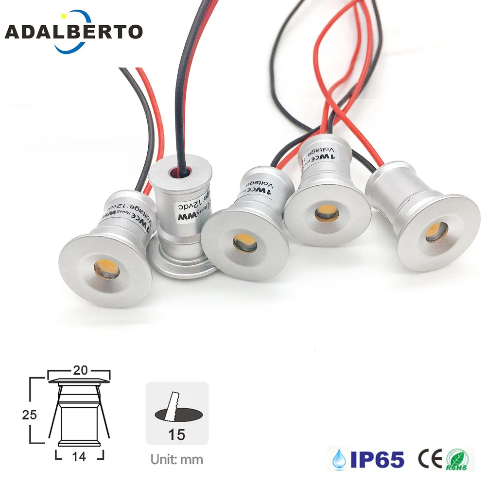 Миниатюрный светодиодный точечные потолочные светильники с пультом дистанционного управления, потолочные комнатные встраиваемые лампы с отверстием 1 Вт 15 мм, серебристые светильники для шкафа, 12 В