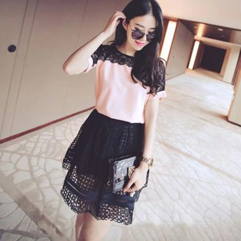 Шифоновые женские блузки, кружевные розовые женские рубашки с коротким рукавом 4XL5XL, женские топы, женские блузы, Элегантные корейские модные
