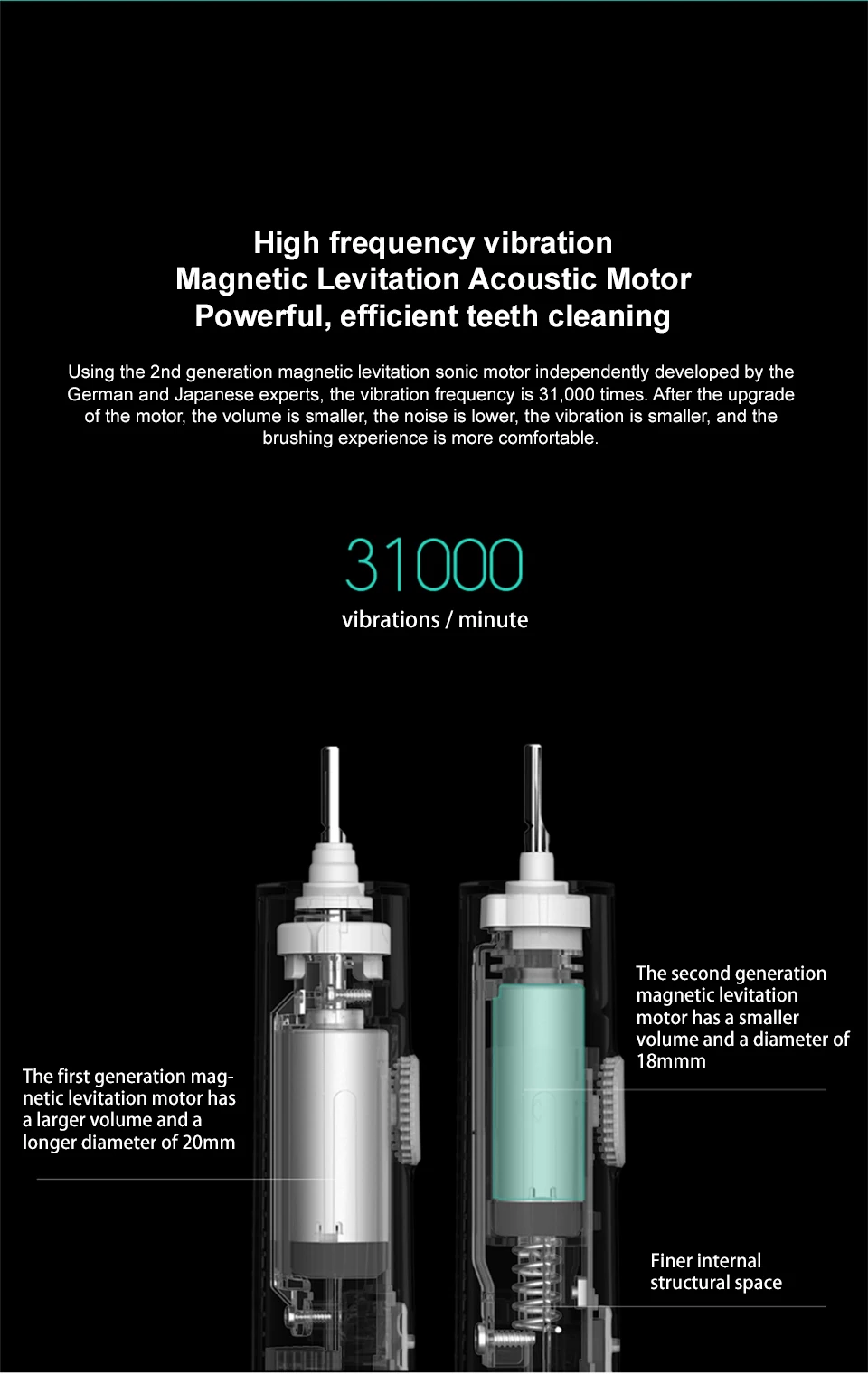● 31000 раз в минуту высокочастотная вибрация, сильная чистка зубов