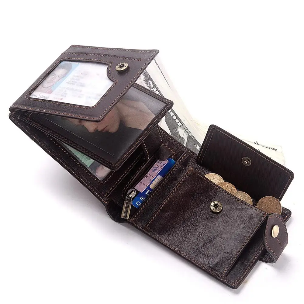 Кошелек мужской из 2020 натуральной кожи с рчид, короткий бумажник на застежке для мелочи, маленькая кредитница, качественная кредитница, 100%