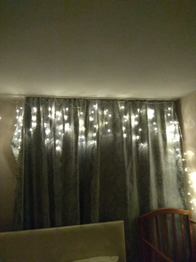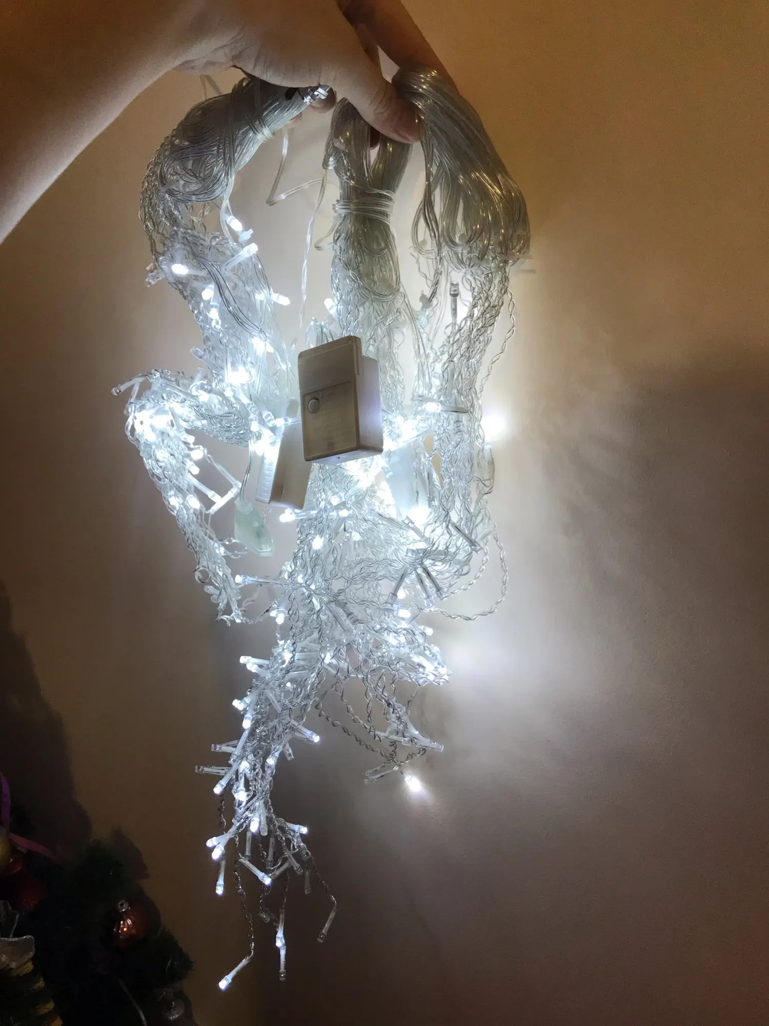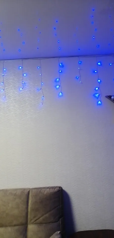 Вот так на самом деле выглядит герлянда. Не так густо как на картинке, в общем всё остальное отлично, герлянда работает, доставка быстрая.На фото две шт. они соединяются между собой, что очень удобно. Заказом довольна спасибо большое)))