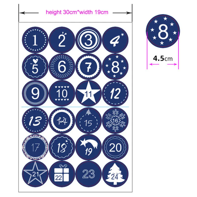24 шт.компл. с Рождеством и новым календарем, бумажная наклейка с номером печенья, конфетная печать, рождественские украшения, сделай сам, подарочная упаковка, этикетка
