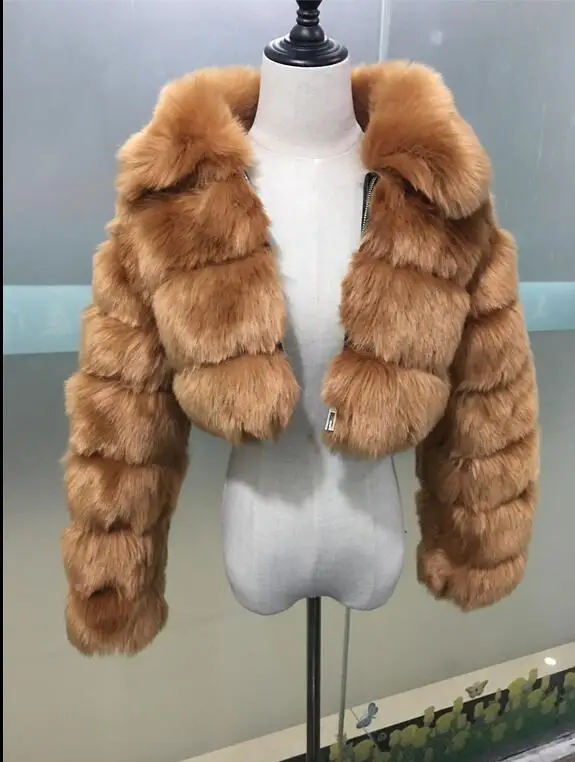 Теплое плотное пальто из искусственного меха, пушистая верхняя одежда на молнии, женское пикантное модное женское пальто, зимняя короткая куртка с воротником-стойкой на осень и зиму