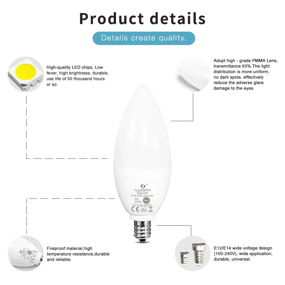 Светодиодная лампочка GLEDOPTO ZigBee 3,0, 4 Вт, E12E14, RGBCCT, 2000K-6500K, работает с приложением Alexa Echo Plus, голосовым и радиочастотным пультом дистанционного управления