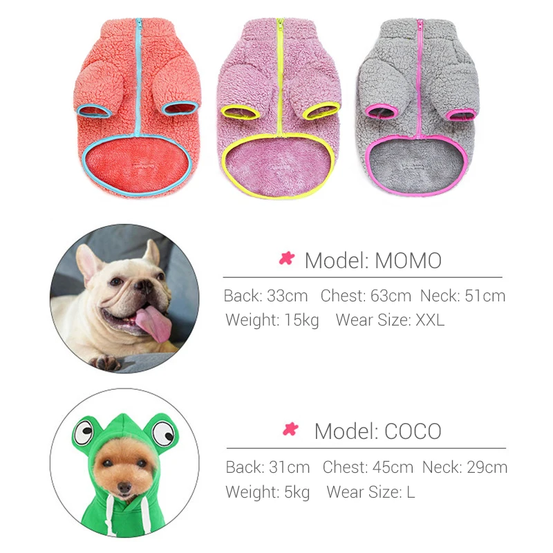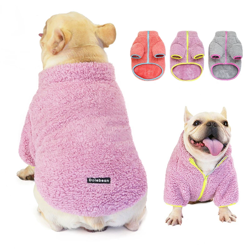 Флисовая одежда для собак, мягкая теплая зимняя куртка для маленьких и средних собак, контрастные цвета, базовая Толстая куртка для собак, французский стиль Одежда для бульдога