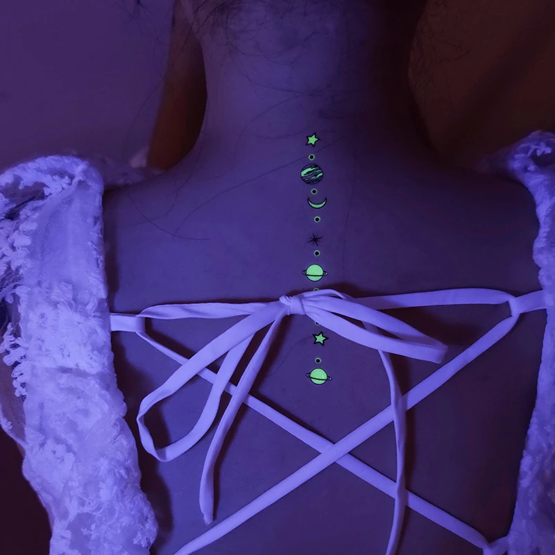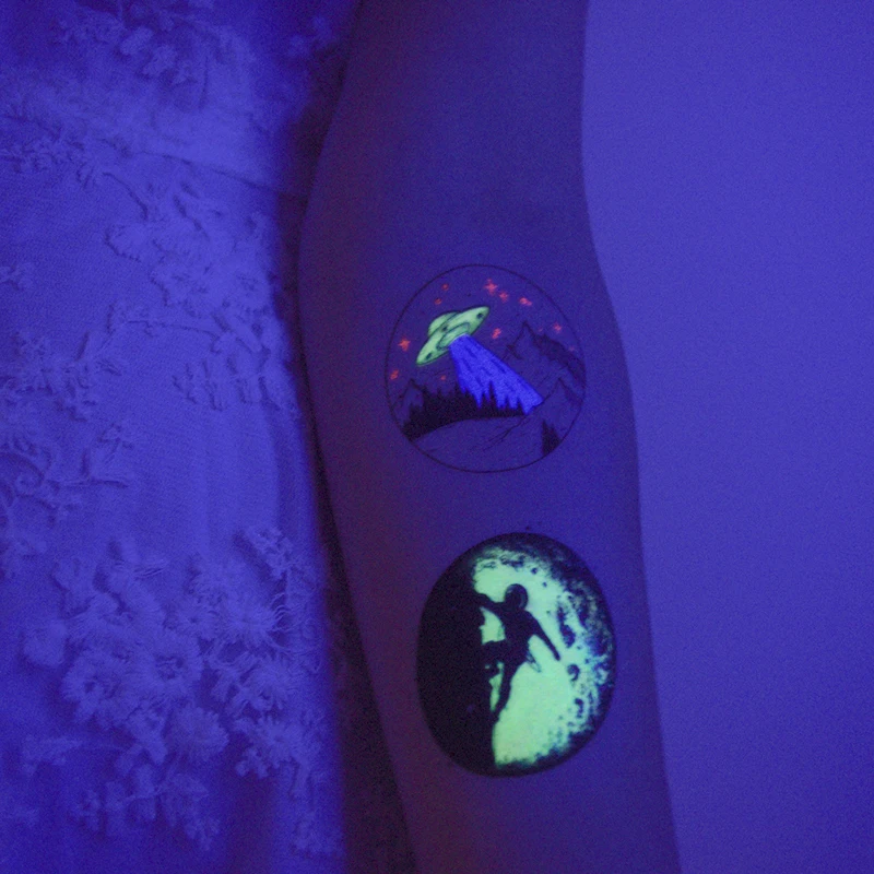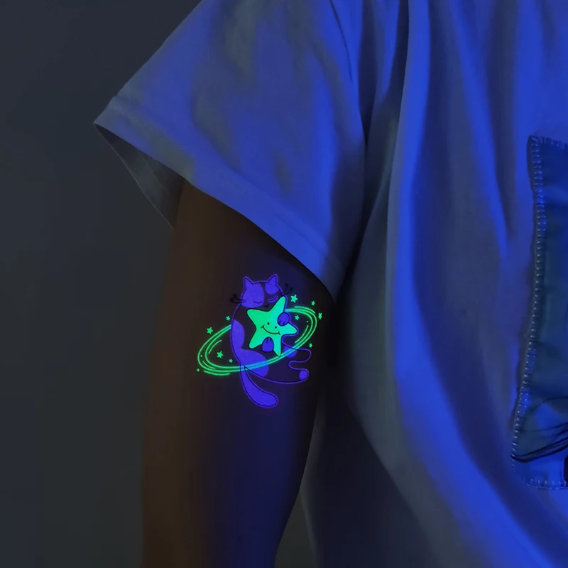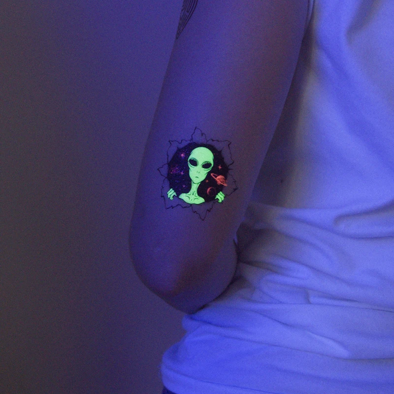 Мультфильм маленькая планета космический человек тату для детей светящиеся темные Тати водонепроницаемые поддельные боди-арт тату светящиеся тату наклейки